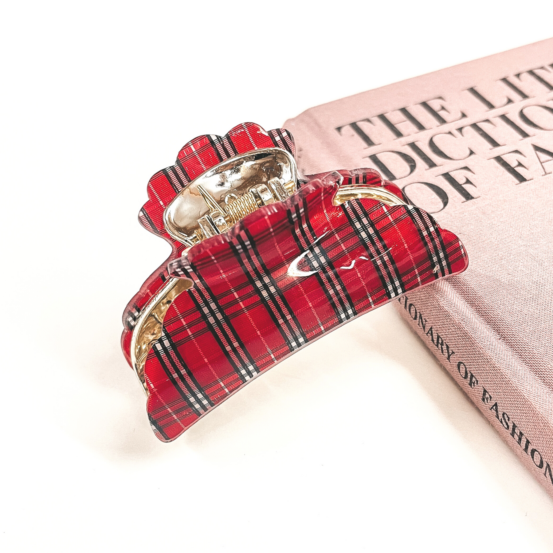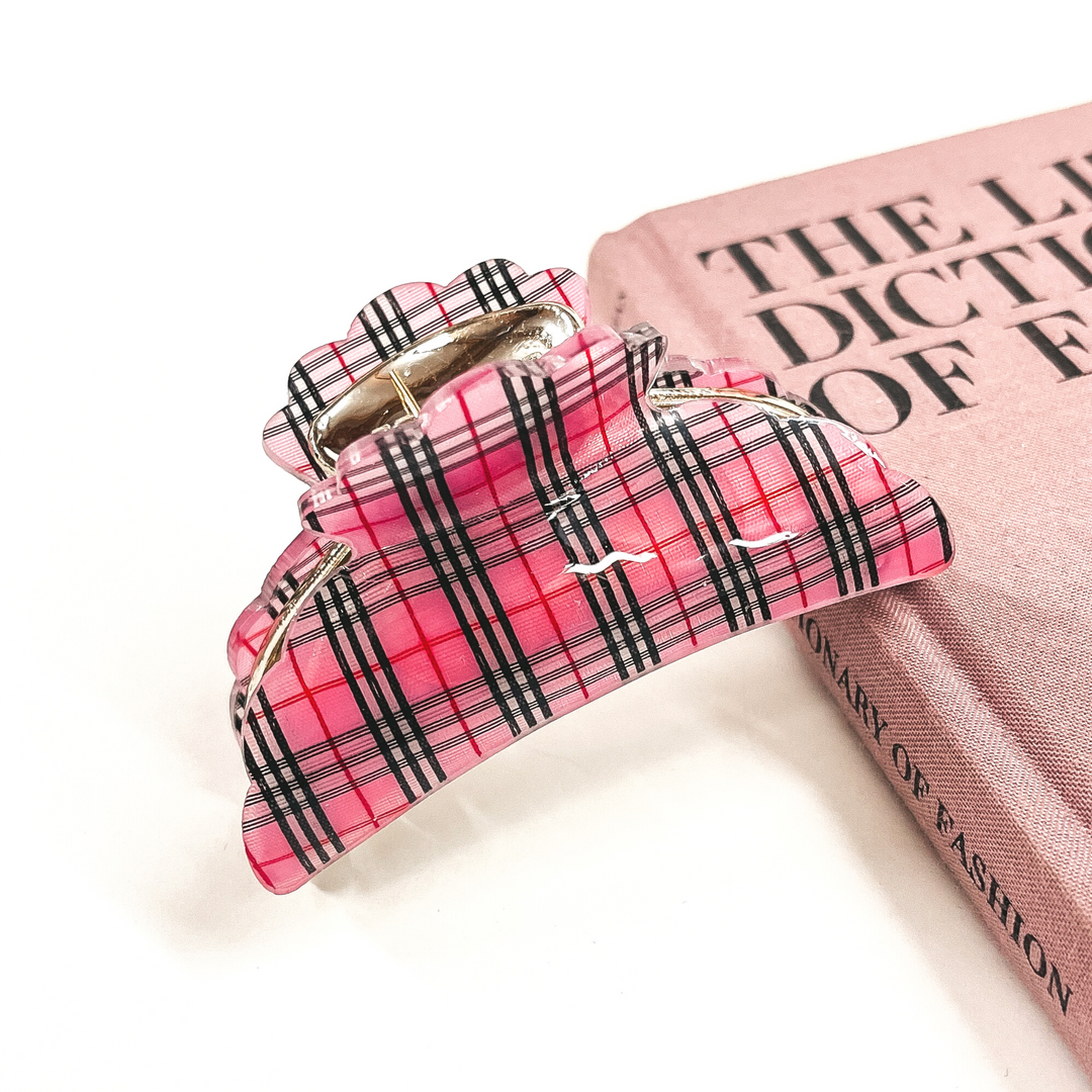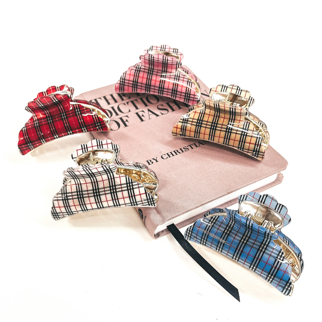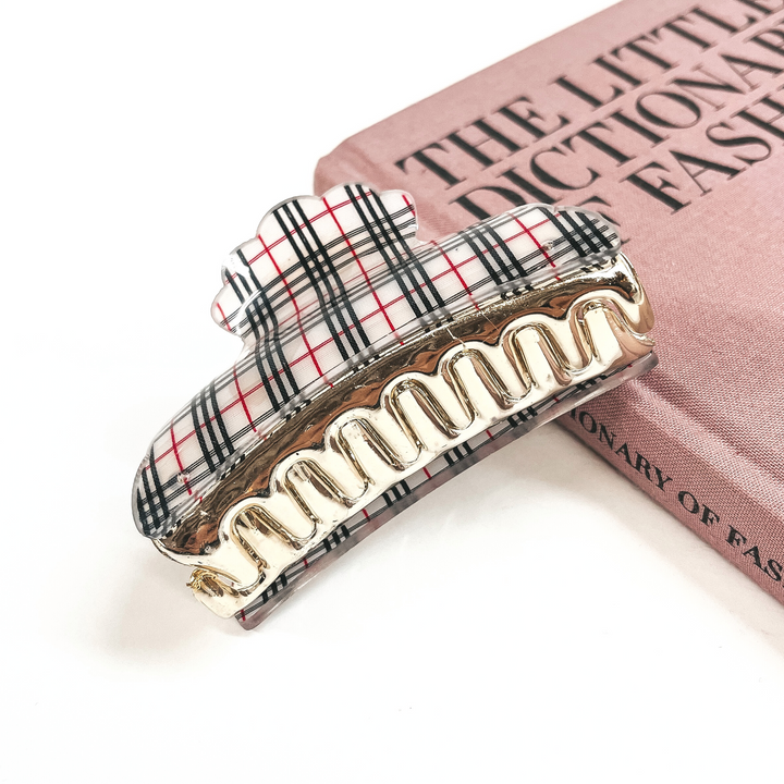 Gold Tone and Plaid Print Hair Clip in Various Colors