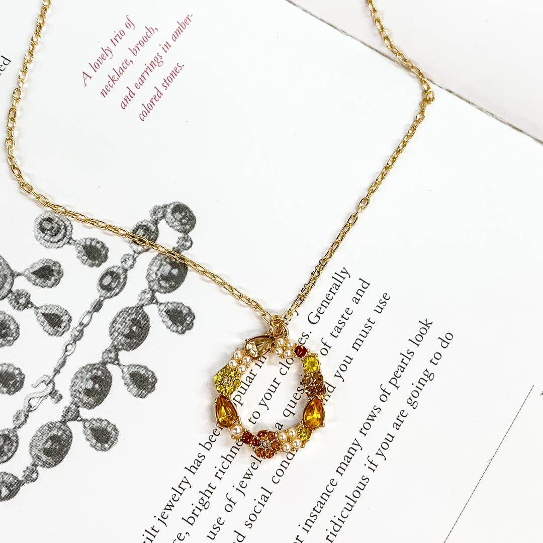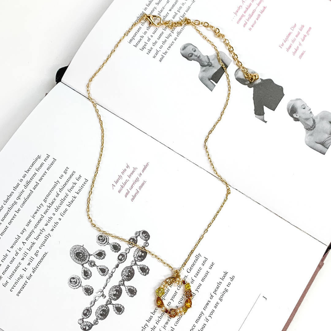 Gold Tone Chain Necklace and Open Circle Pendant with Topaz Crystals - Giddy Up Glamour Boutique
