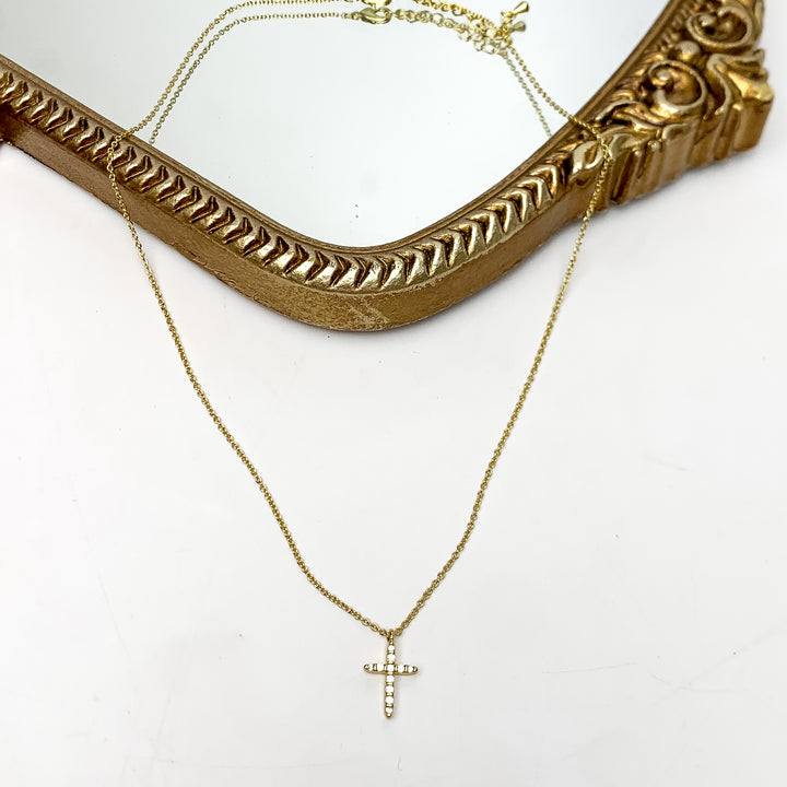 Gold Tone Glory Chain Necklace With Clear Crystal Cross
