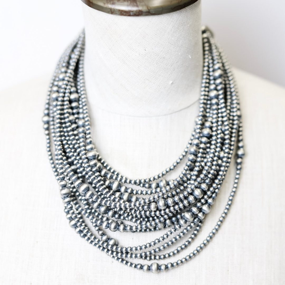 Handmade 4-8mm Graduated Multi Sized Sterling Silver Navajo Pearl Necklace | Varying Lengths