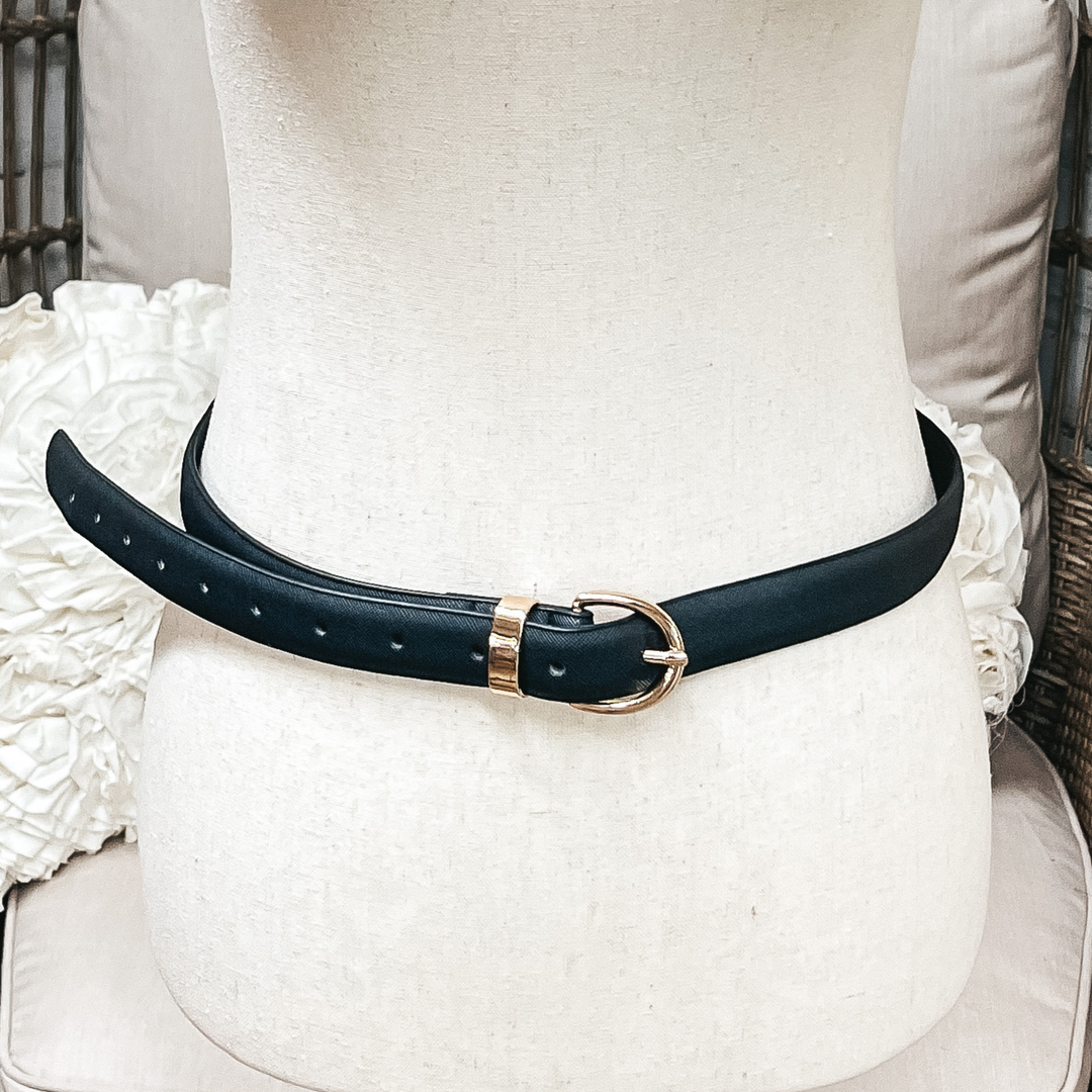 Happy Attitude Skinny Fashion Belt with Gold Tone Buckle in Black