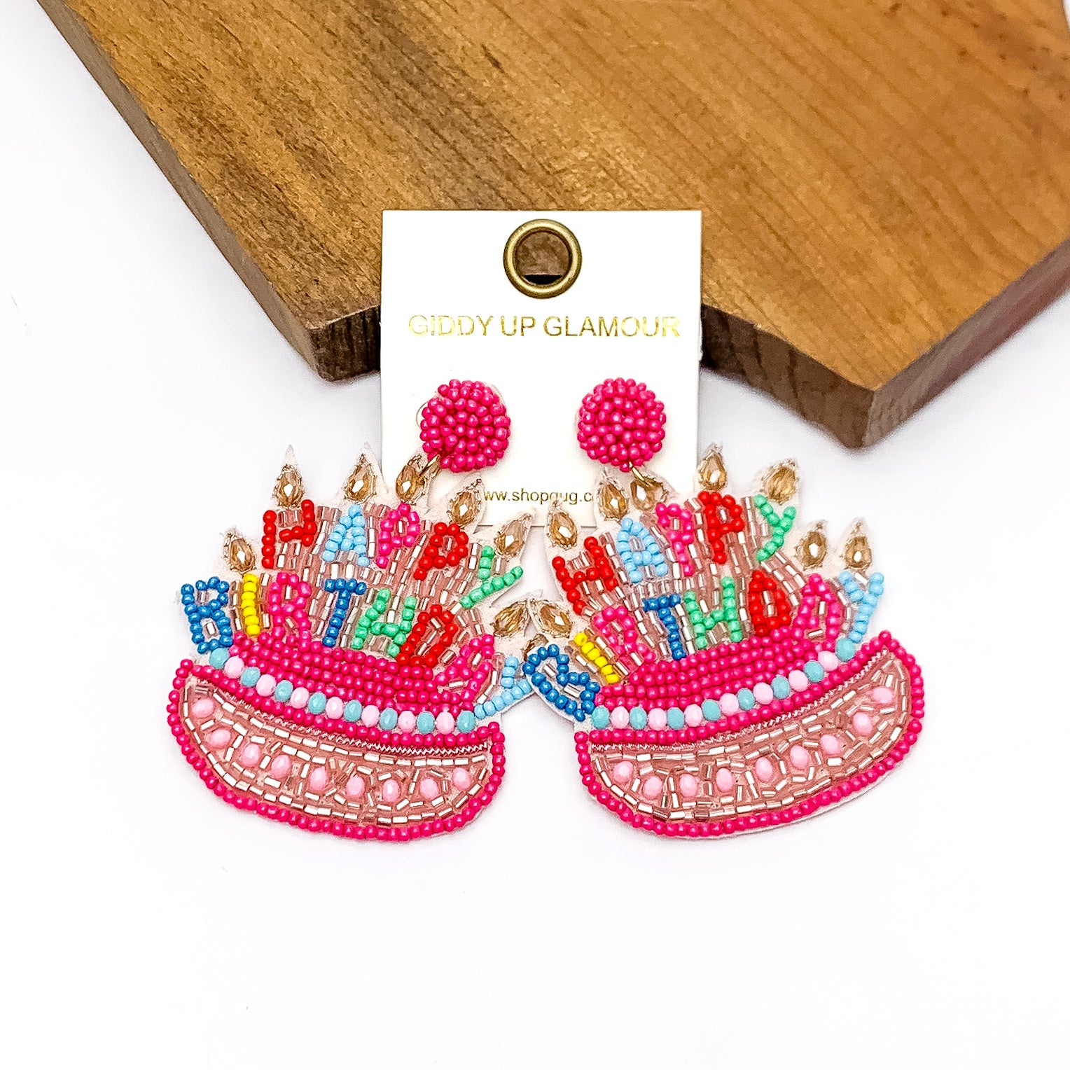 Happy Birthday Cake Beaded Earrings in Pink