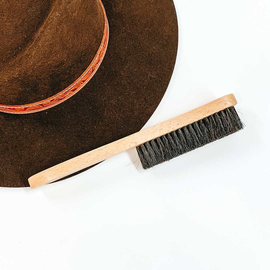 Your hats are an investment, so keep them looking new with this hat brim brush! It features a wooden handle and natural bristles to brush away dust and debris from your dark colored felt hat.