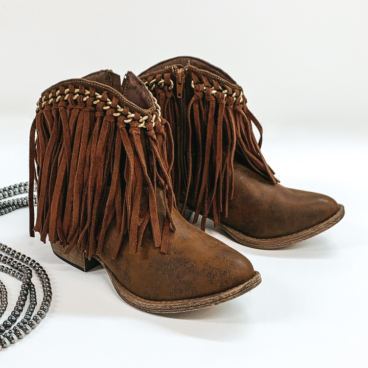 Very G | Rebel Girl Heeled Ankle Booties with Fringe in Brown