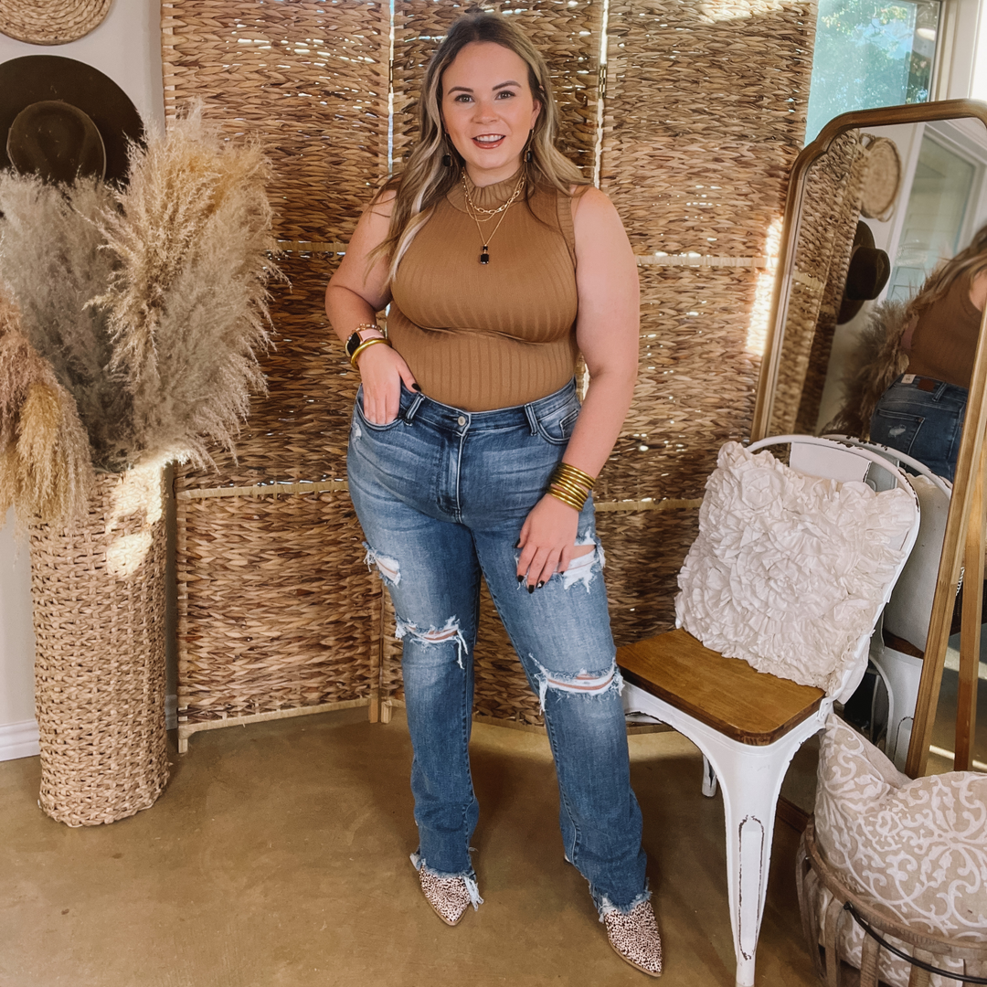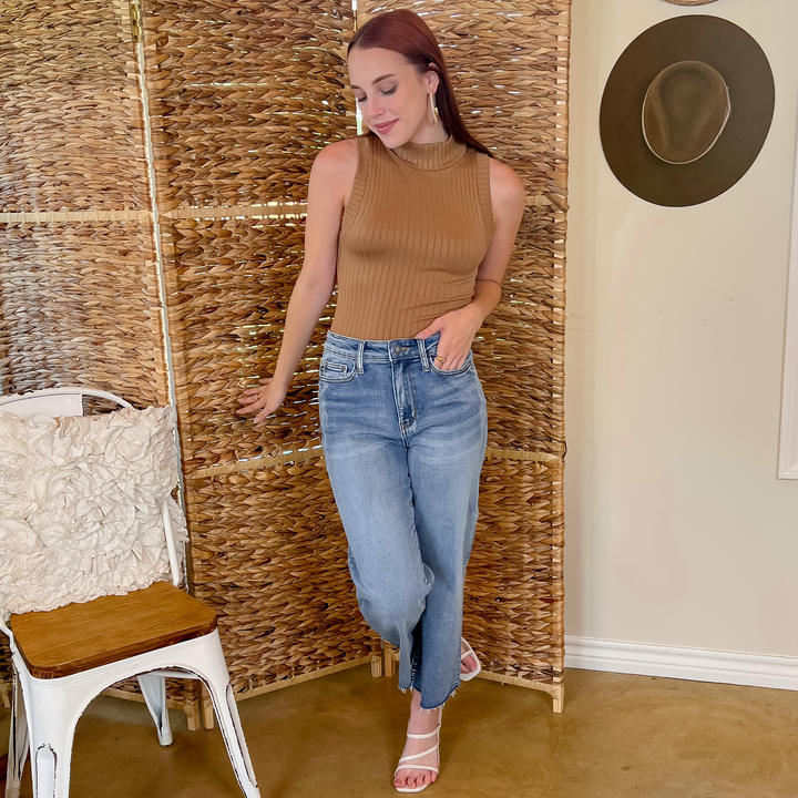 Take Me Somewhere High Neck Ribbed Tank Top in Mocha