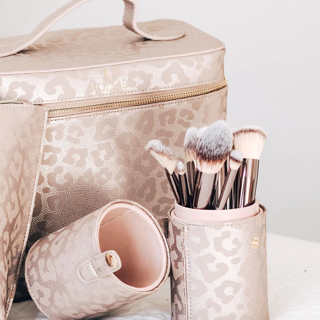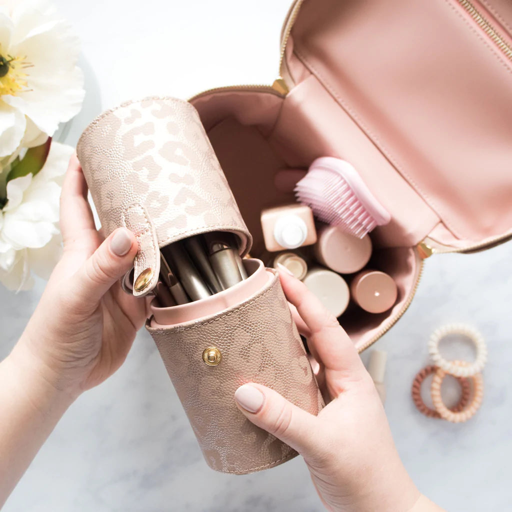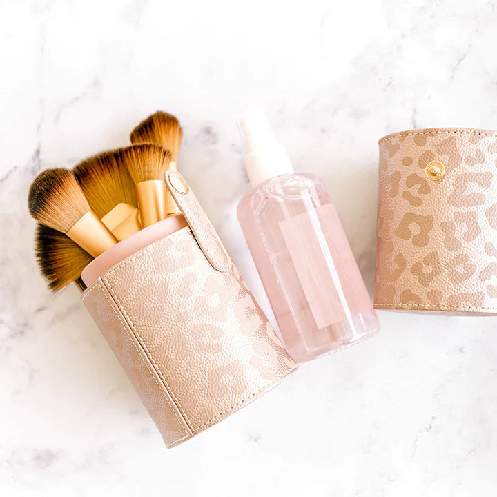 Individual brush holder! You all loved our brush holder from our Leopard Lux so after many requests to be able to purchase it individually, here it is! This brush holder is great for travel but also looks so cute at home, on your bathroom counter! It fits perfect in our Jett Setter and Camilla Couture bags! Brushes sold separately.