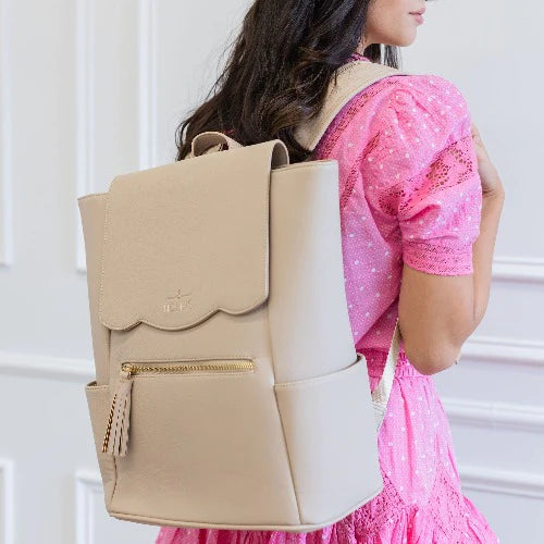 Frilly Full size Backpack! After we launched our diaper bag we had so many requests for a similar design in a regular style backpack. So we did just that! Frilly looks very similar to our diaper bag but has one open compartment inside with out the dividers. The straps are so comfy for long days at school or traveling!