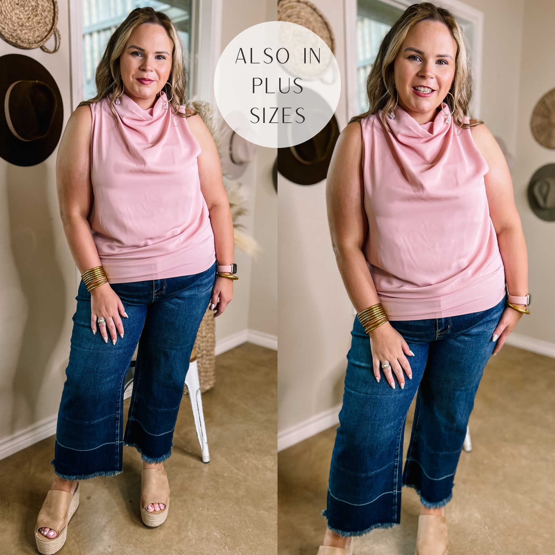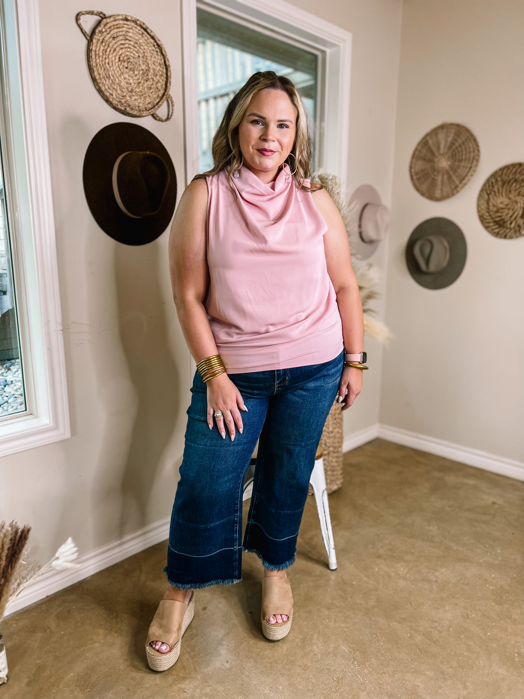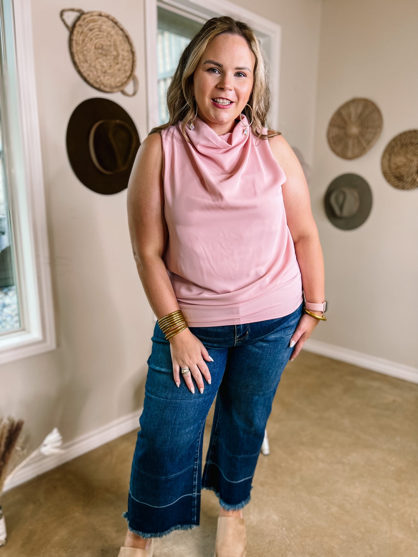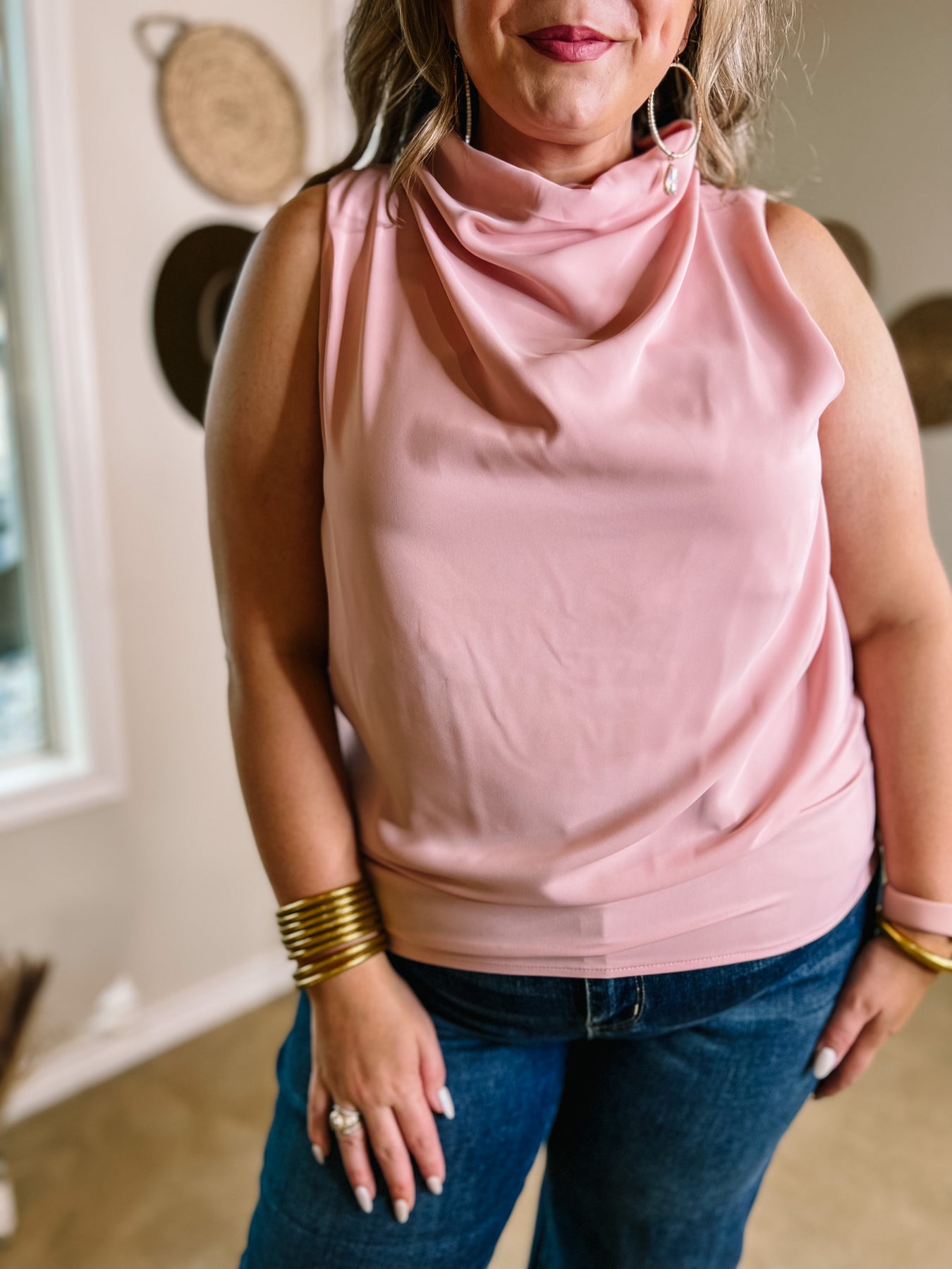 Hot Spot High Cowl Neck Tank Top in Blush Pink