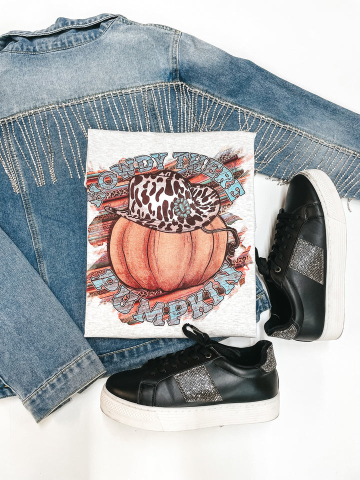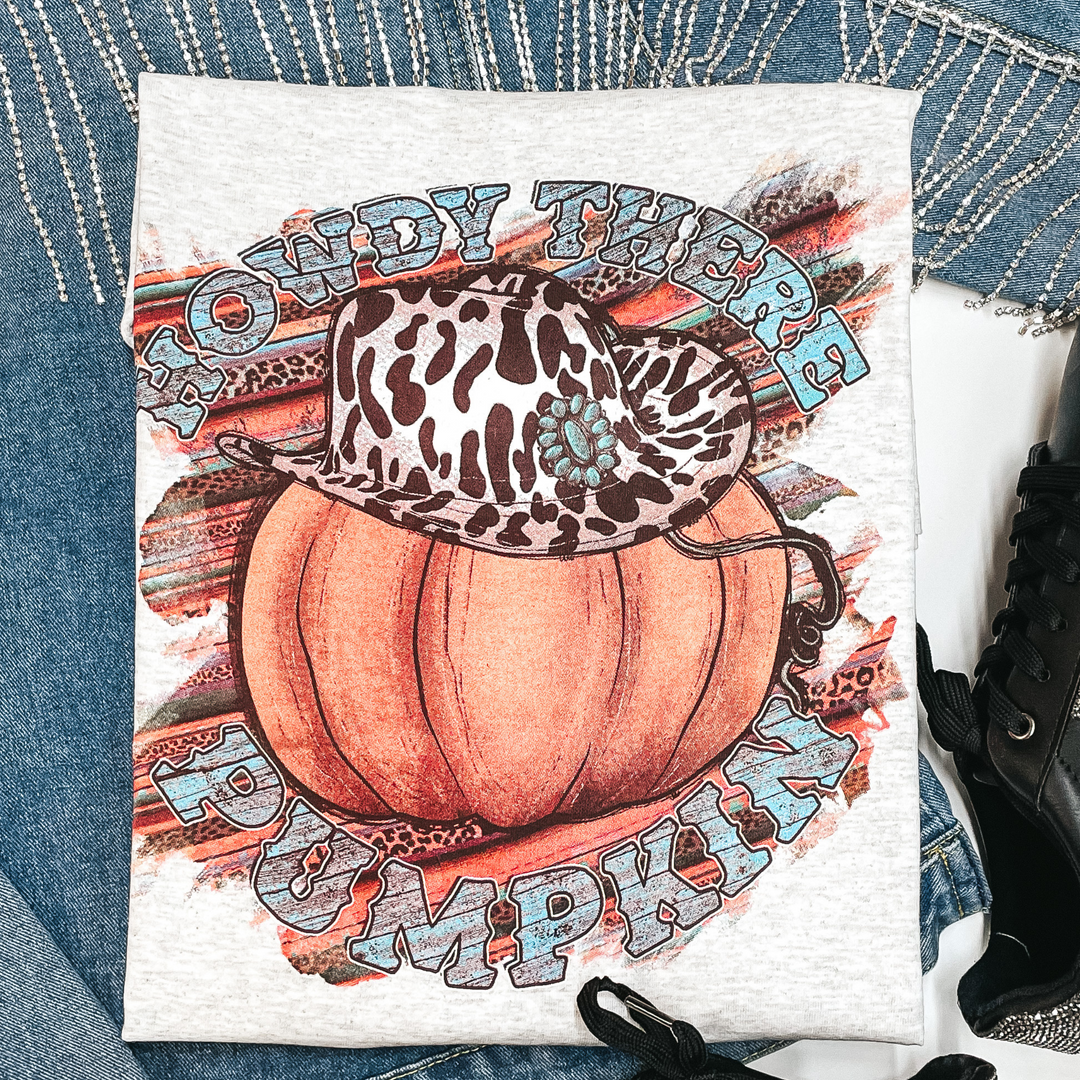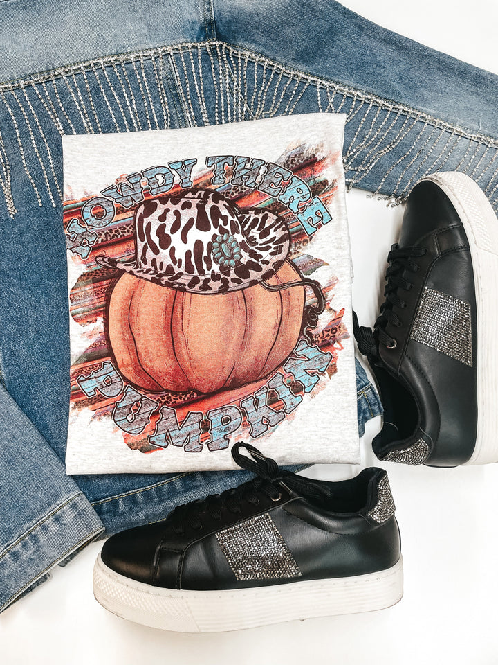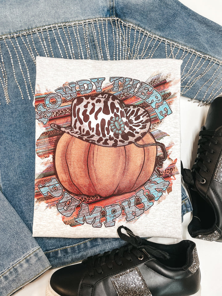 Howdy There Pumpkin Short Sleeve Graphic Tee in Light Heather Grey