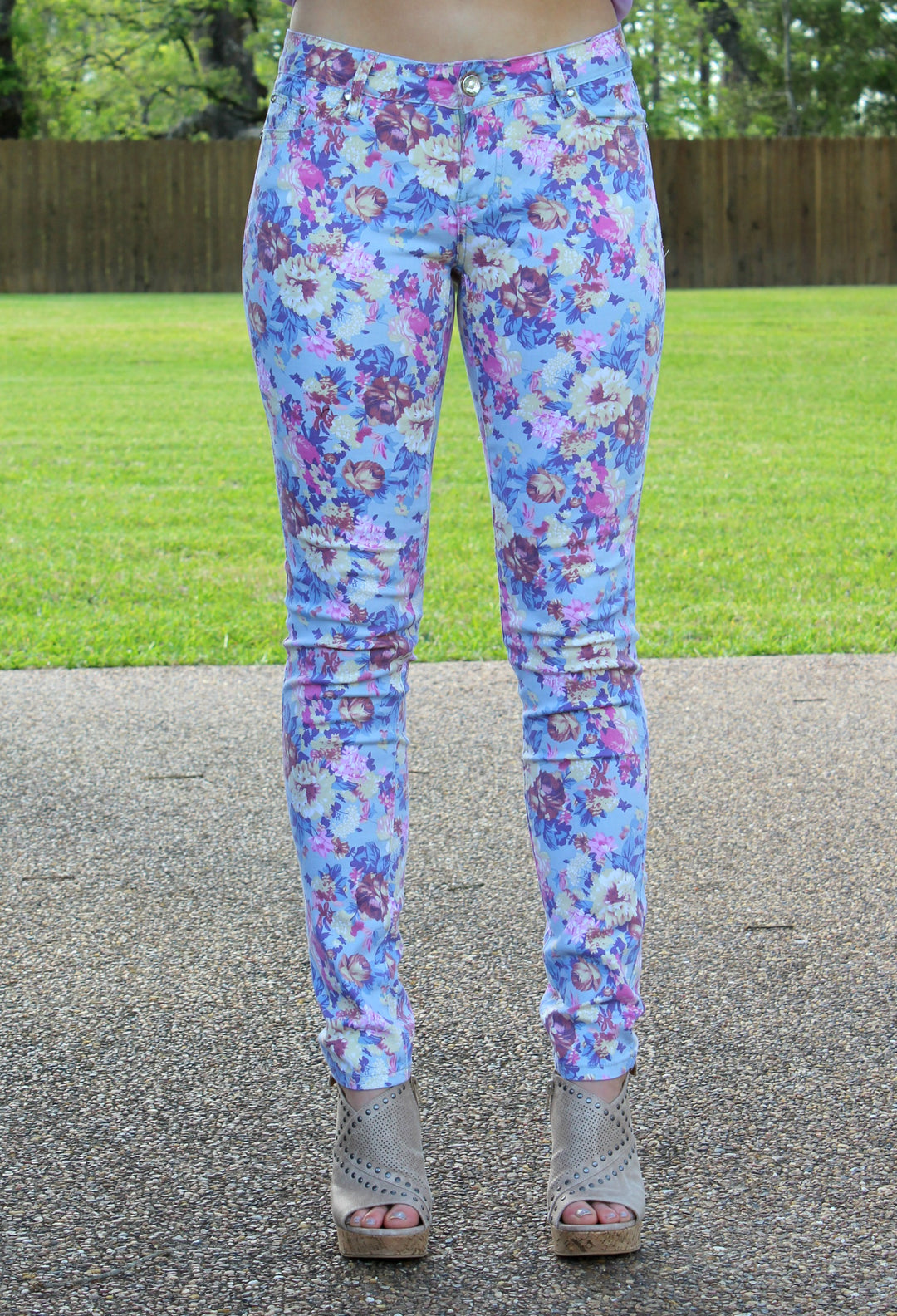Spring has sprung and flowers are in full bloom and these pants have us in all heart eyes! These cute pants feature a 31 inch inseam, full 5 pocket jean style and cute rhinestones for buttons! Model is wearing size 5.