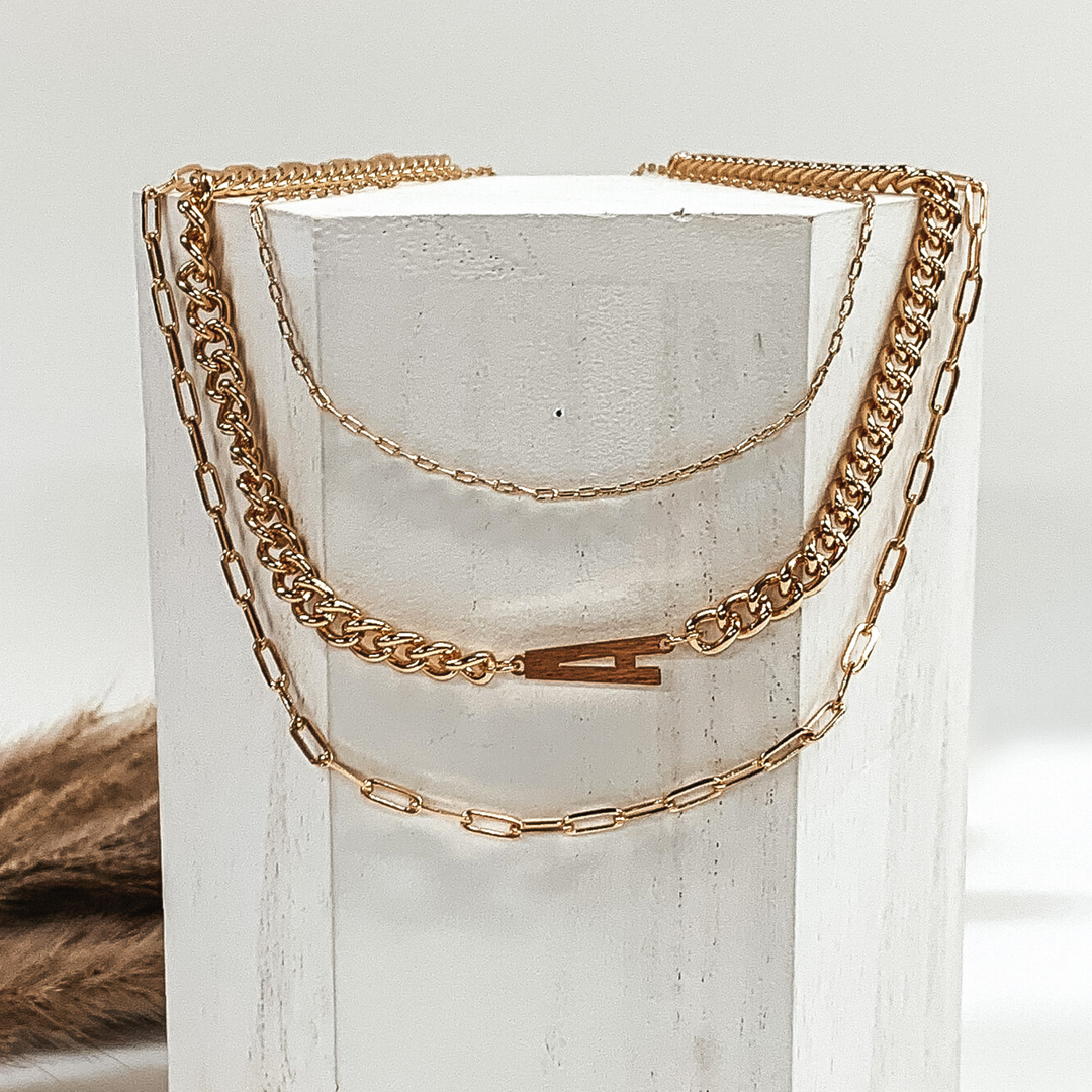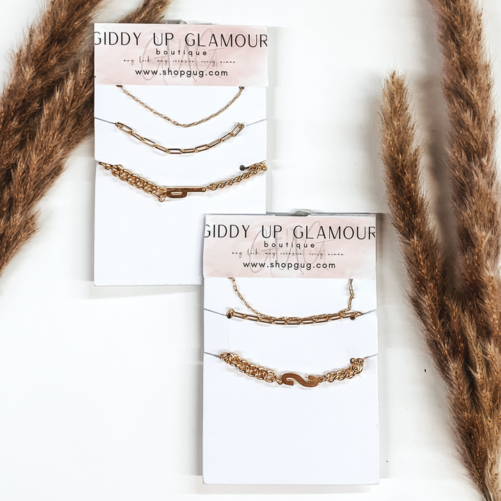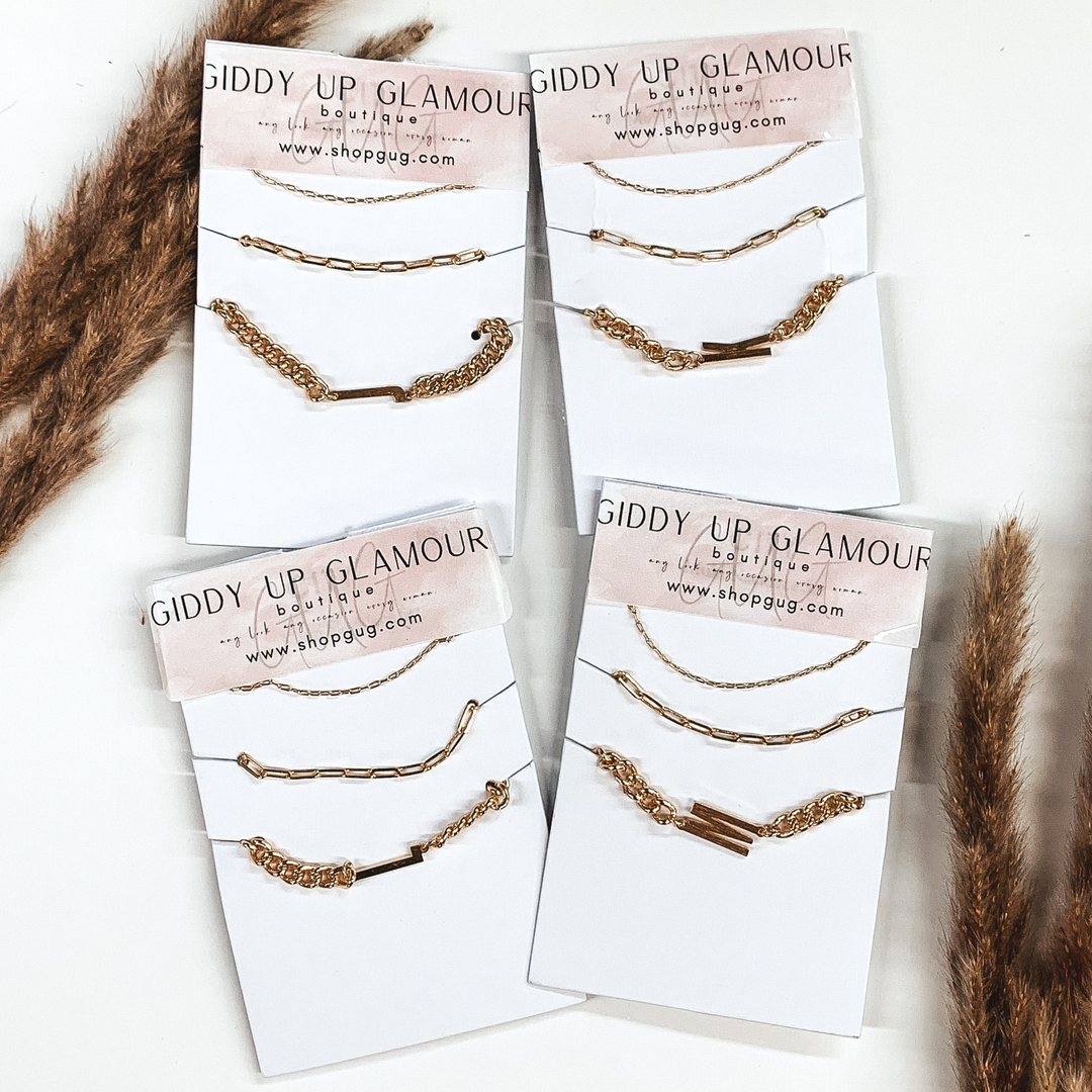 Initial Multi Chained Necklace Set in Gold