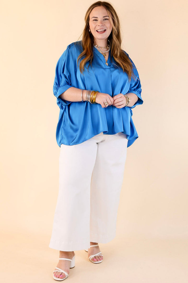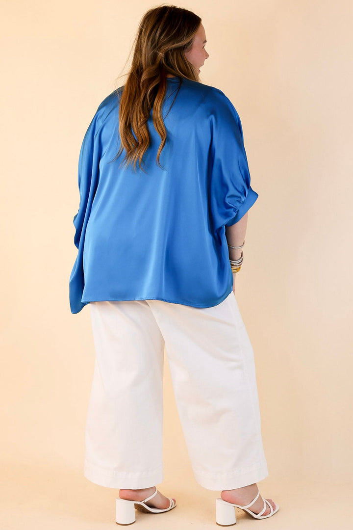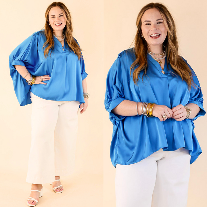 Irresistibly Chic Half Sleeve Oversized Blouse in Blue