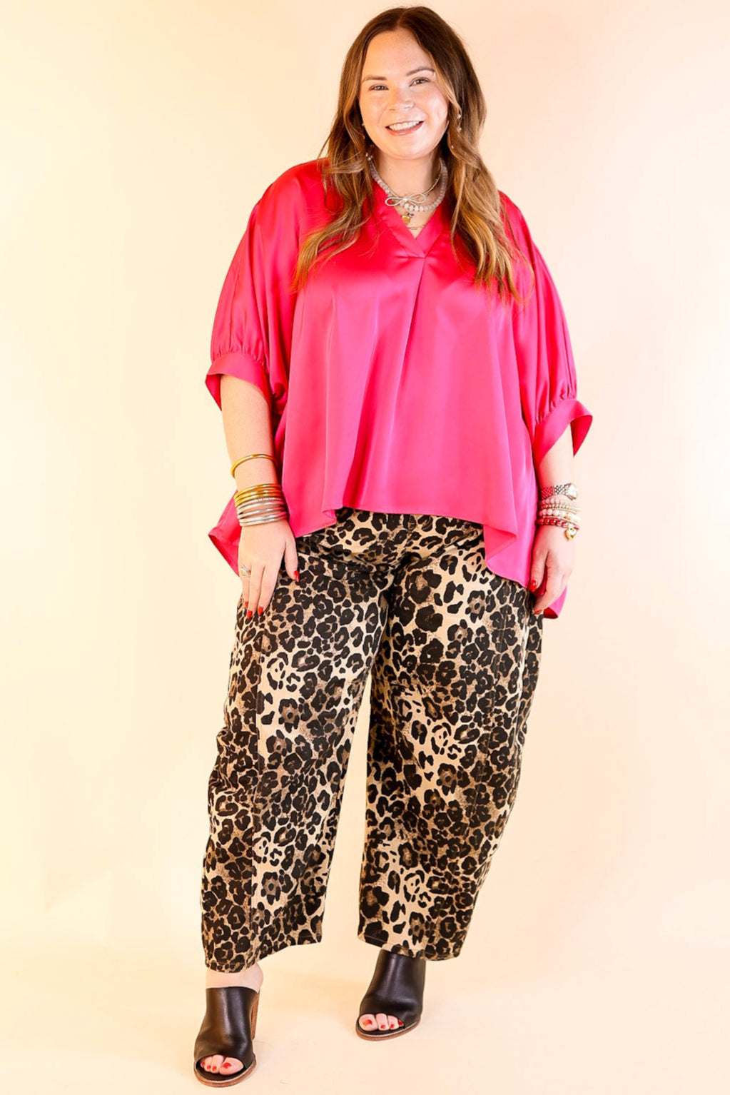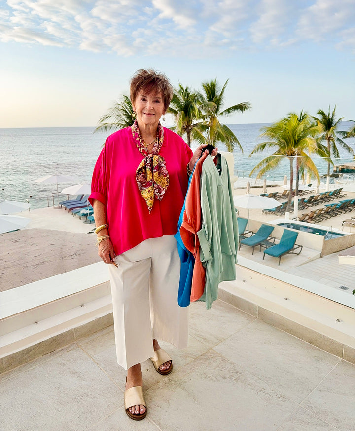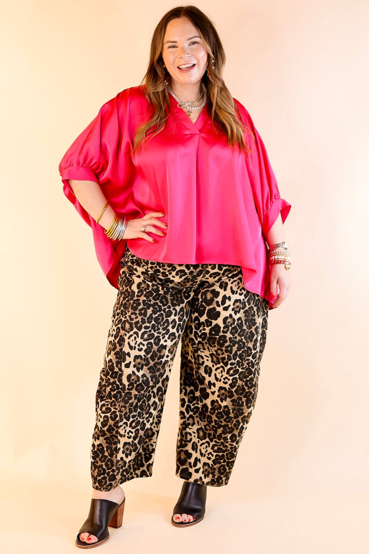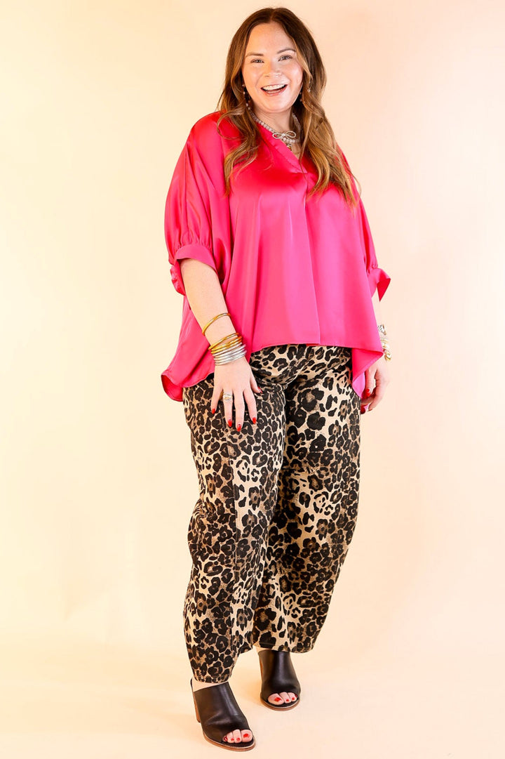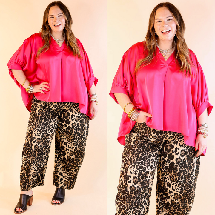 Irresistibly Chic Half Sleeve Oversized Blouse in Fuchsia Pink