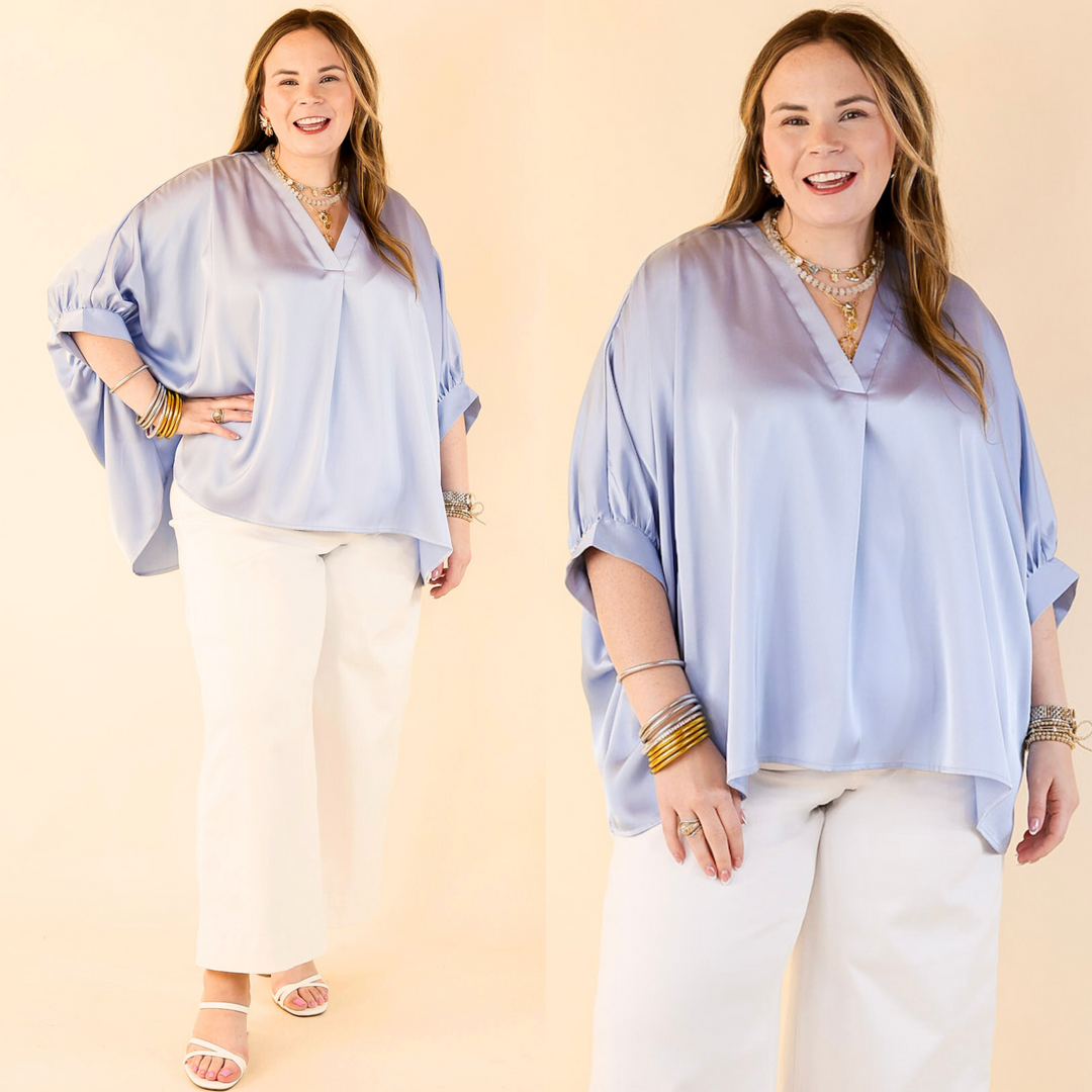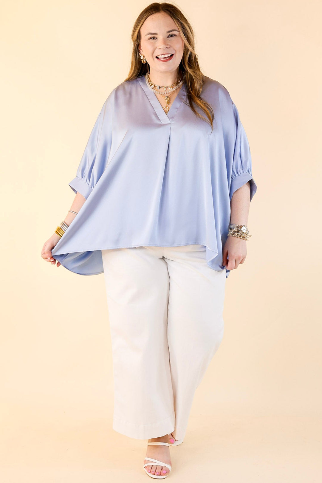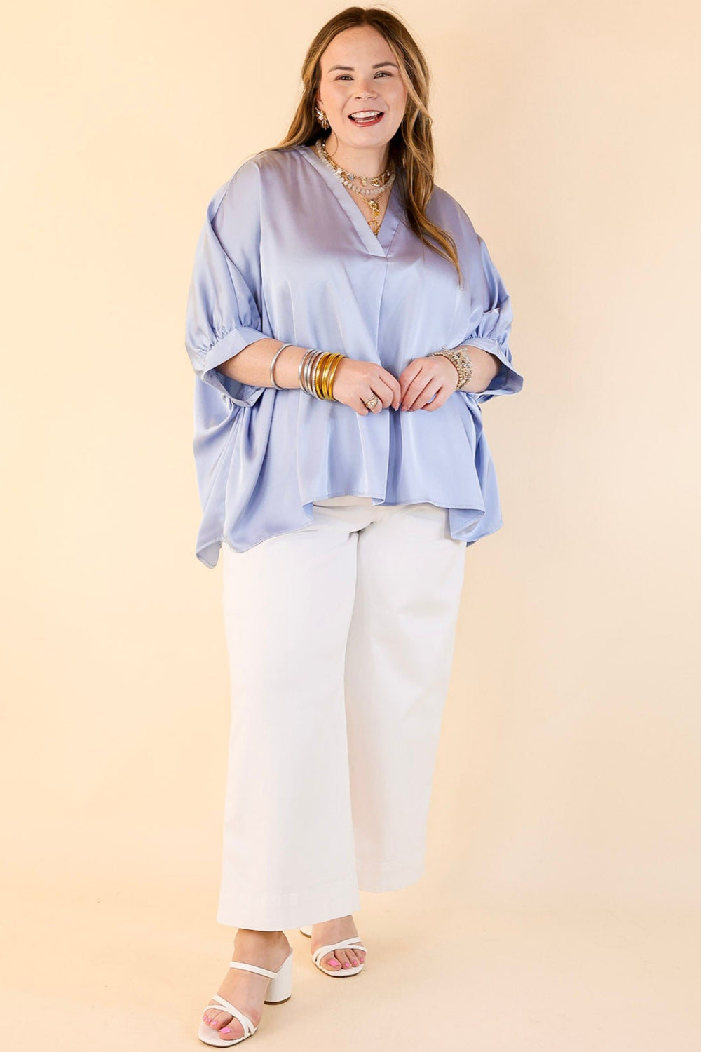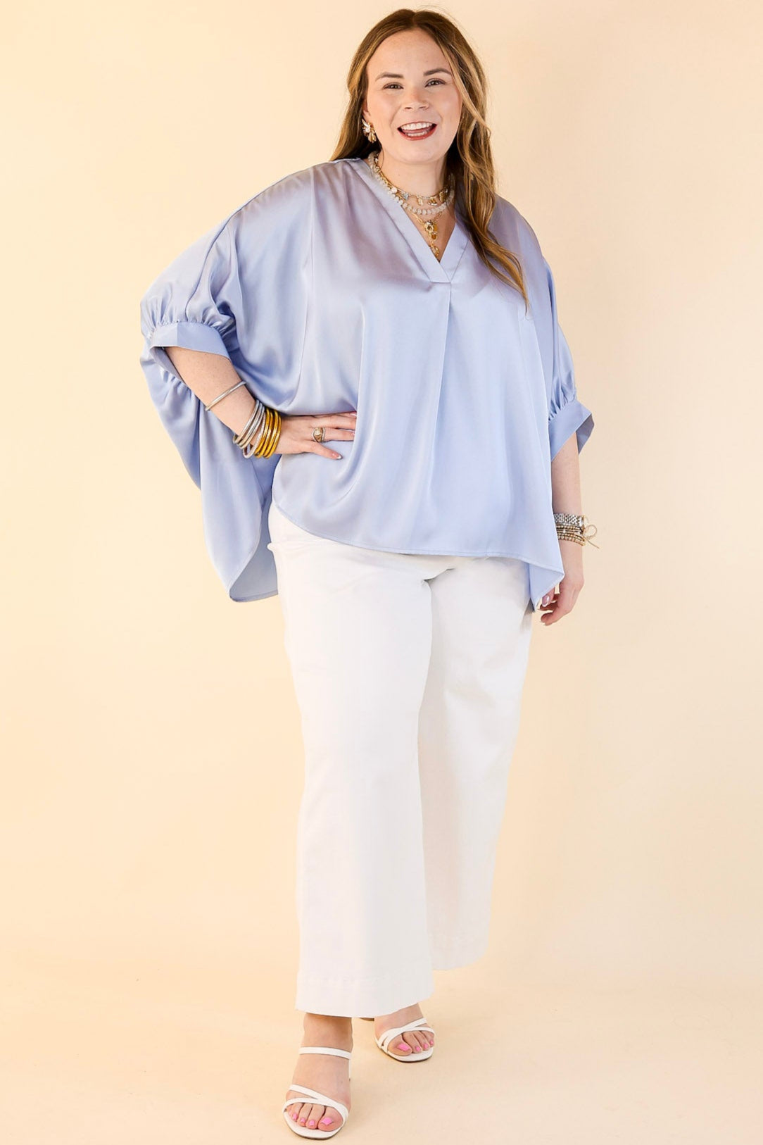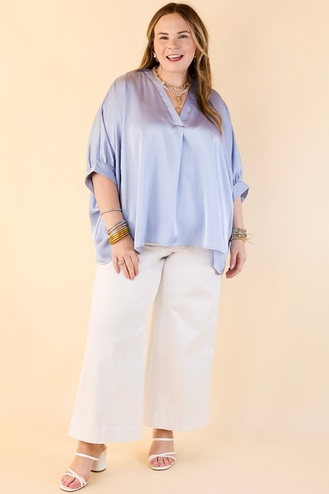 Irresistibly Chic Half Sleeve Oversized Blouse in Light Blue