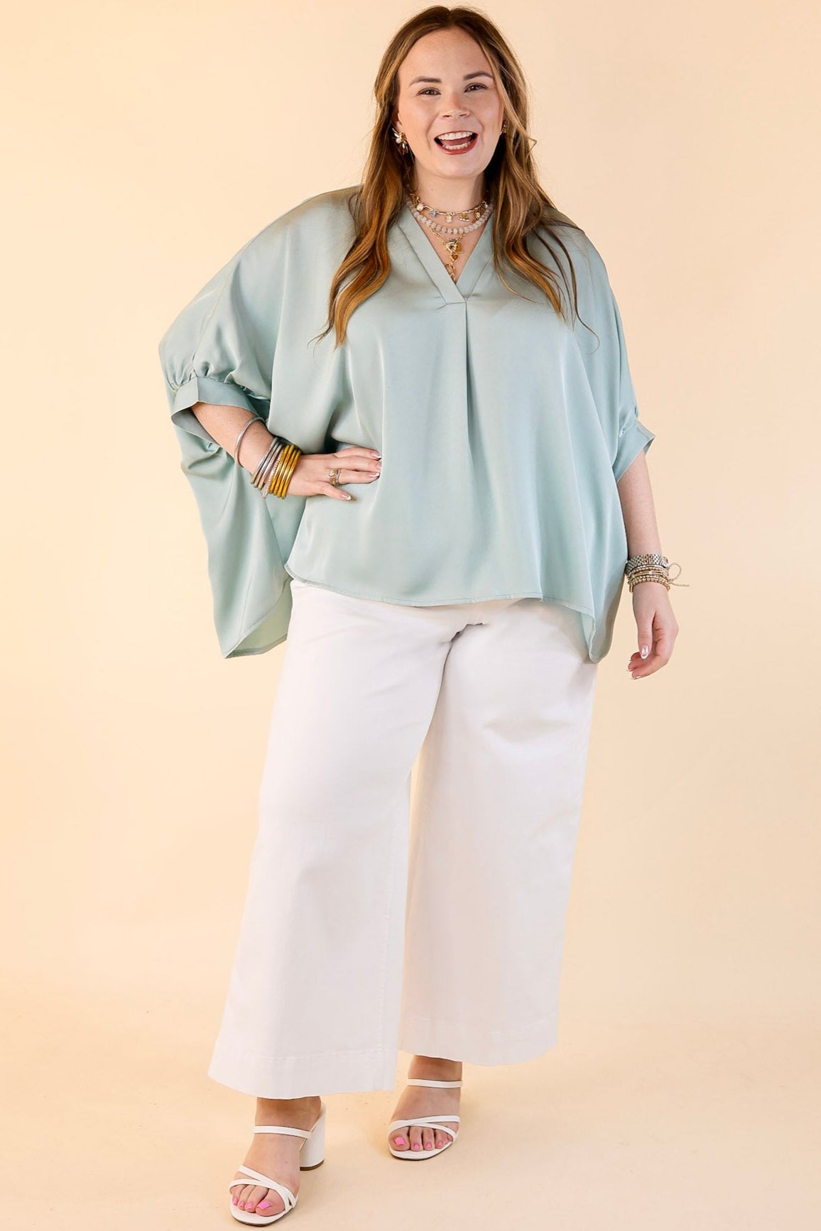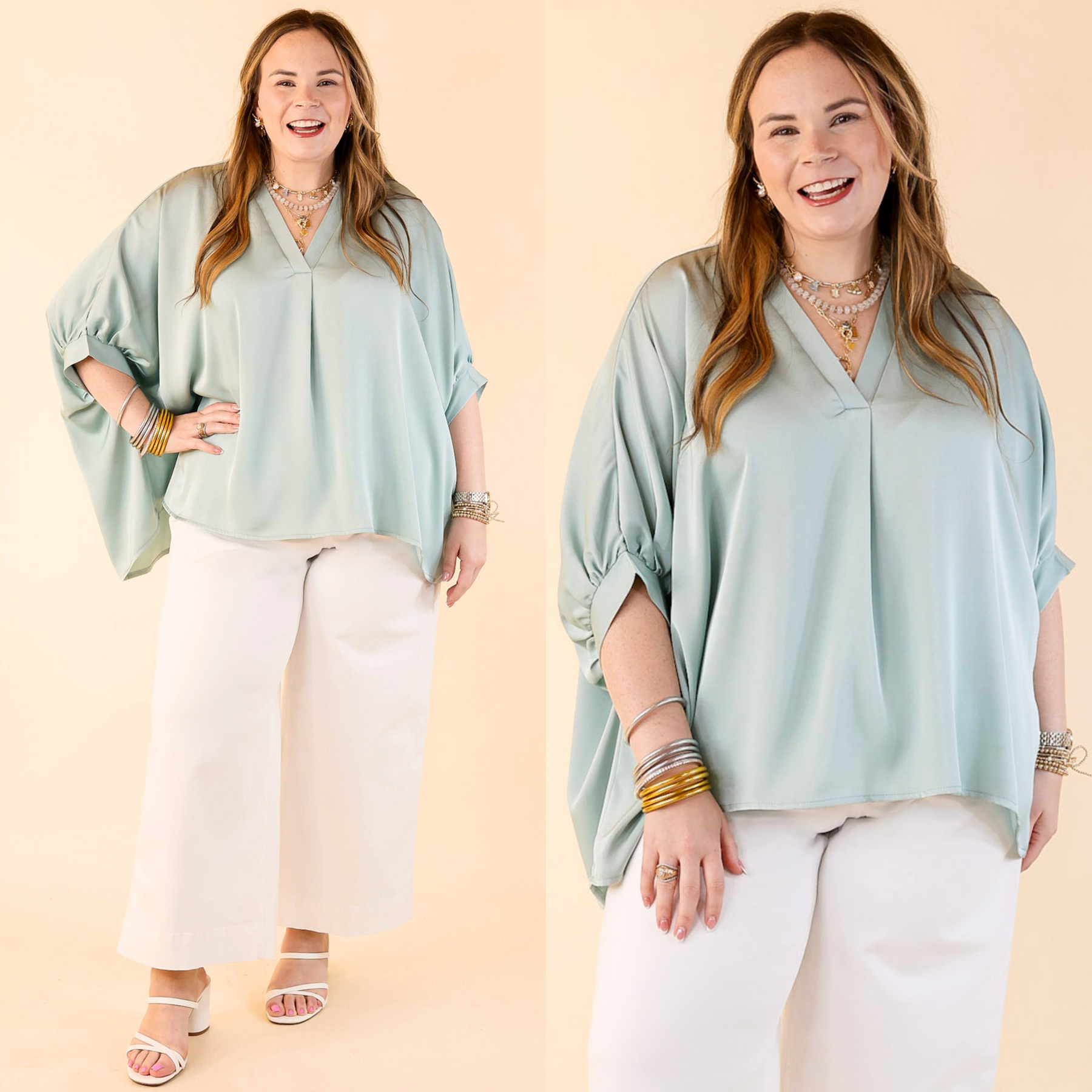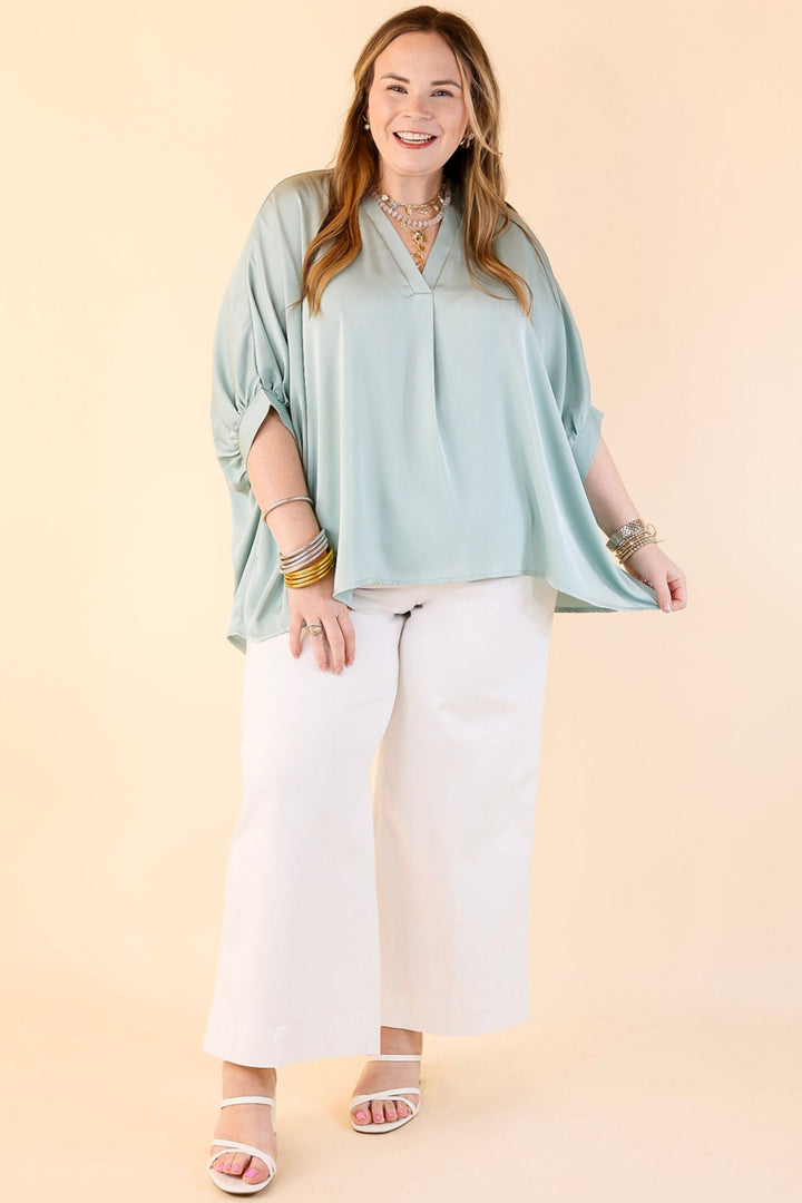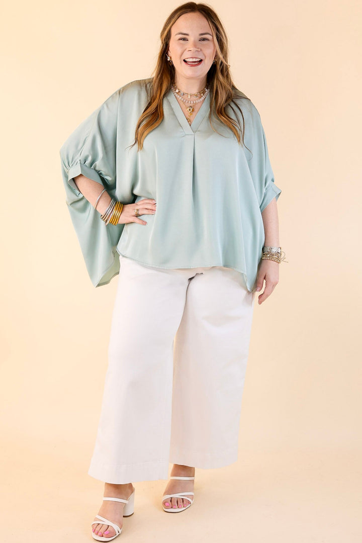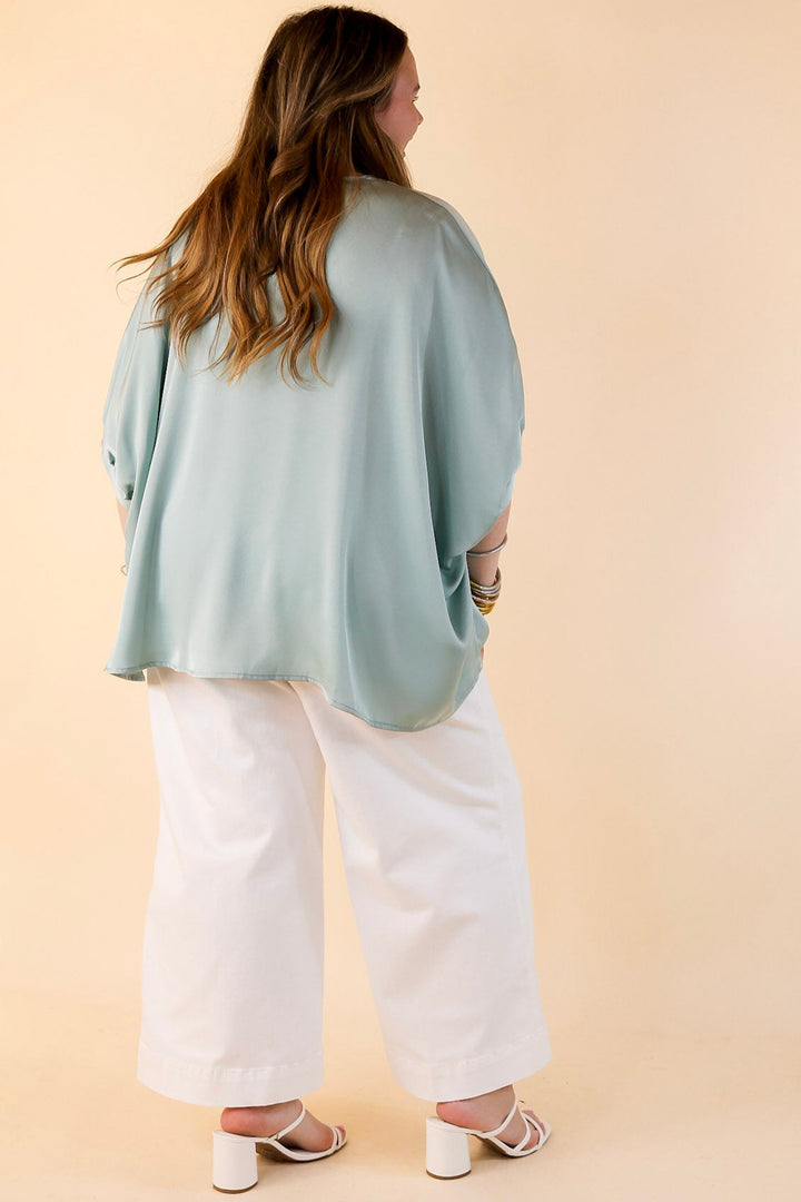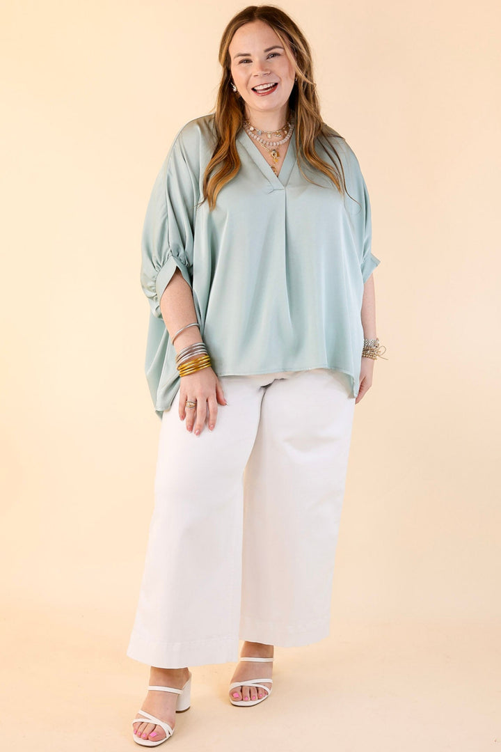 Irresistibly Chic Half Sleeve Oversized Blouse in Mint Blue