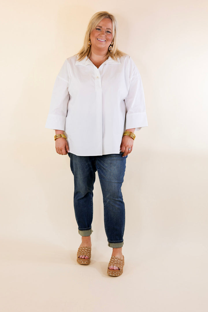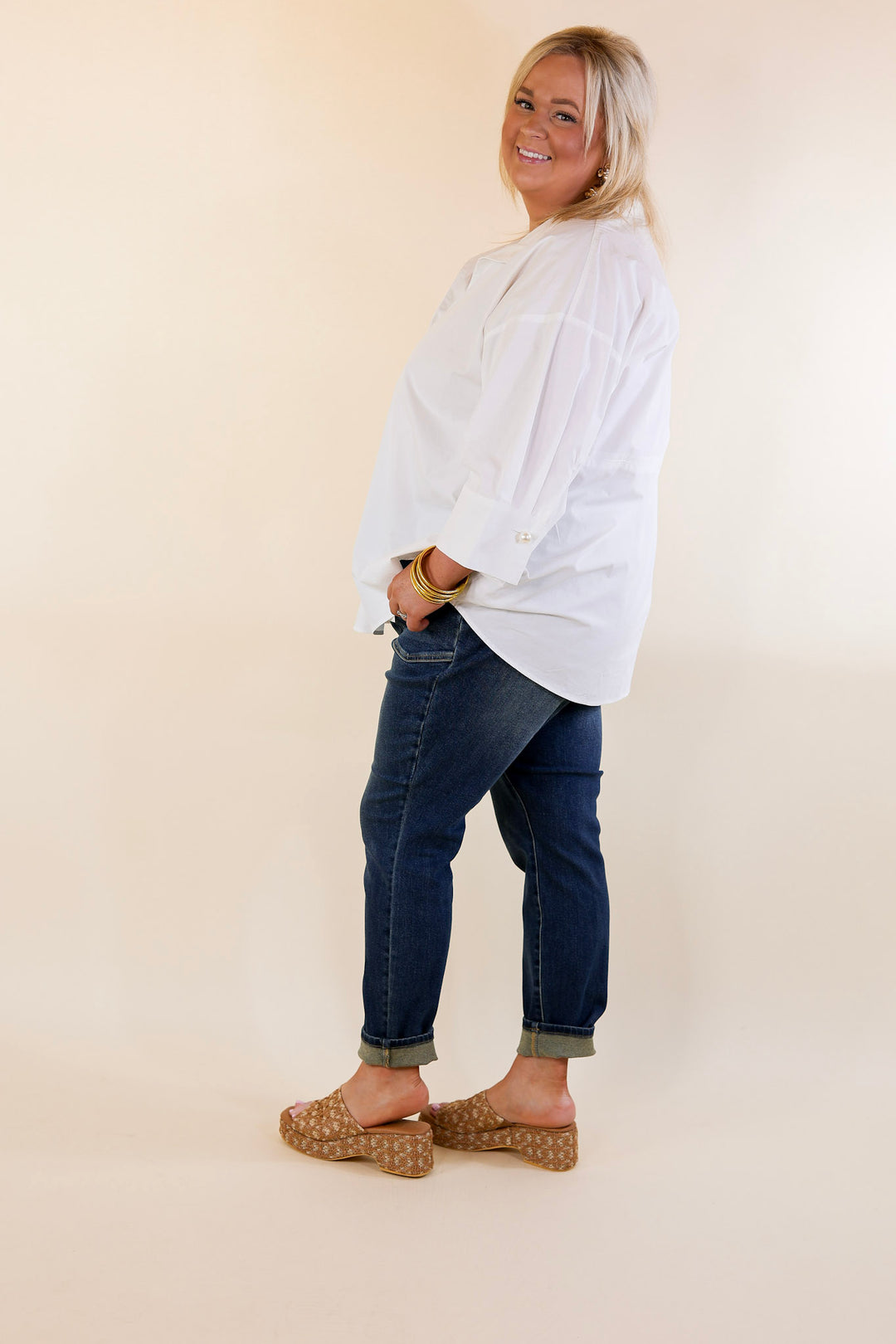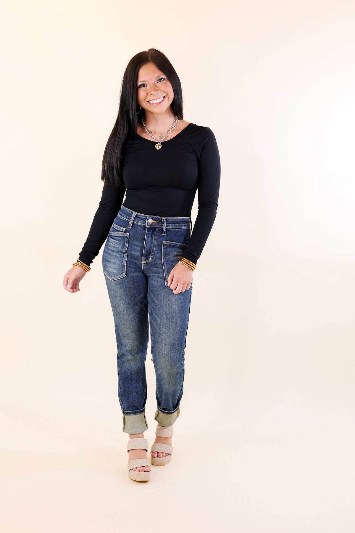 Experience effortless style and comfort with the Easy Breezy High Waisted Relaxed Fit Jeans by Judy Blue. These jeans combine a relaxed fit with a flattering high waist design, creating a perfect blend of casual chic and comfort. The dark wash denim adds a touch of sophistication, making them versatile for any occasion. Crafted from premium quality denim, these high waisted jeans ensure a comfortable fit and long-lasting durability.