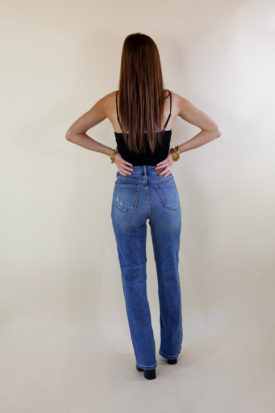 Last Chance Size 22W | Judy Blue | Festival Feels Tummy Control 90's Straight Leg Jeans in Medium Wash