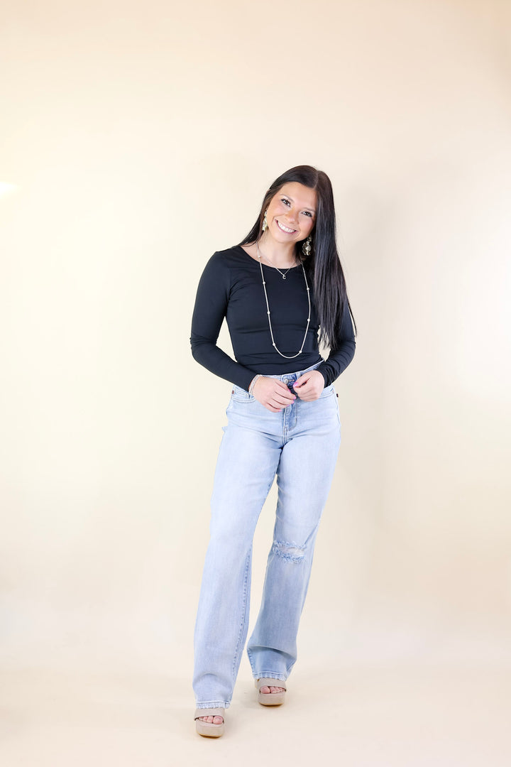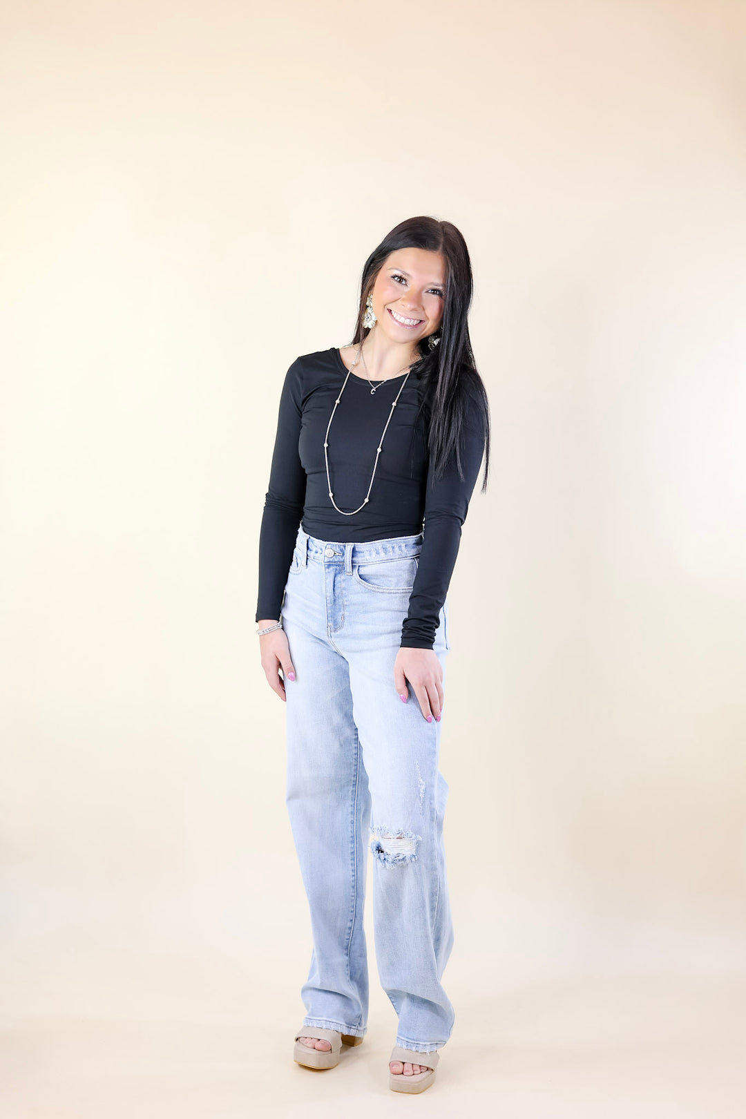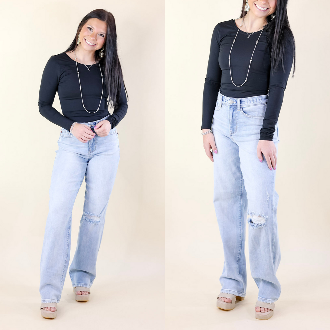 Judy Blue | Retro Edge 90's Ripped Knee and Back Straight Leg Jeans in Light Wash