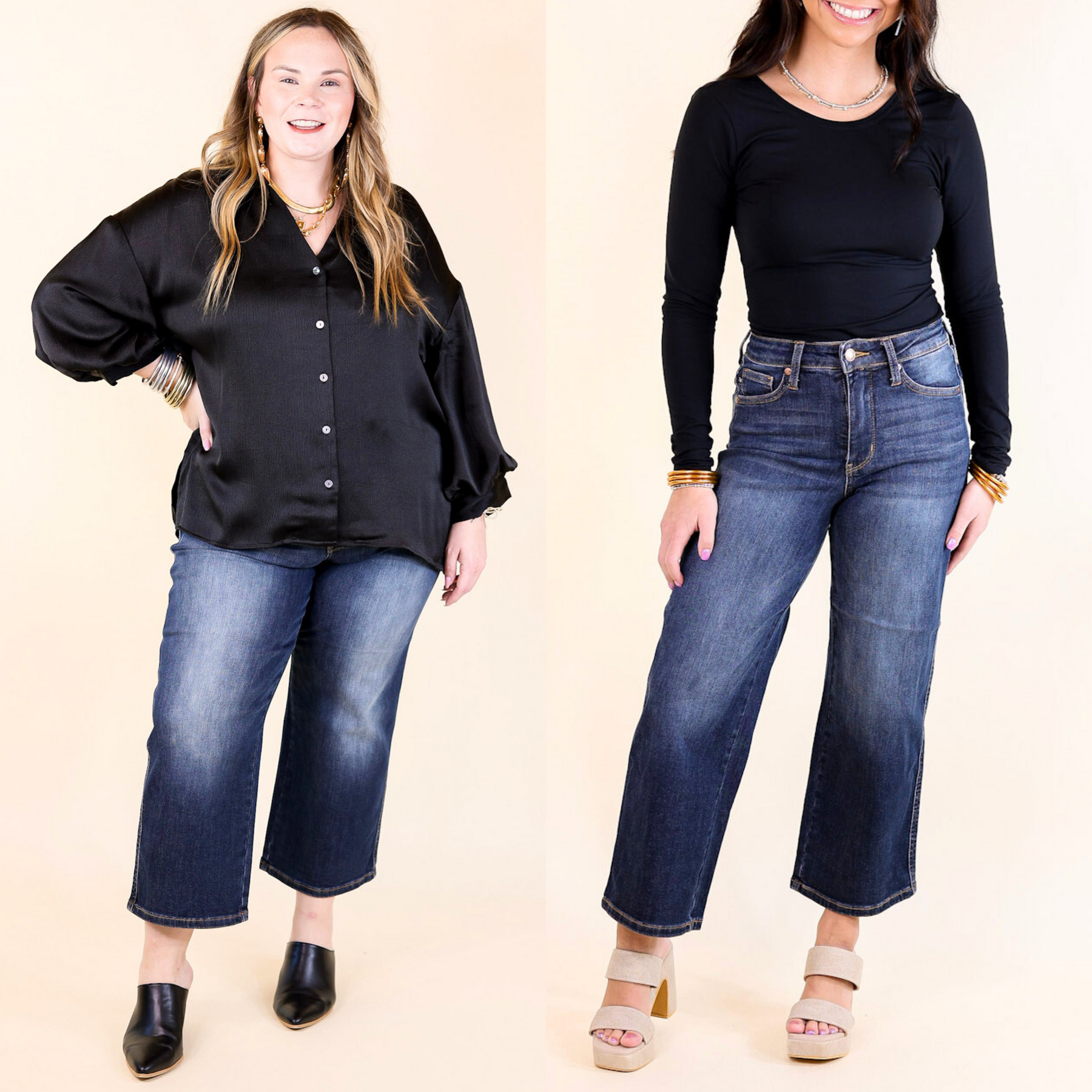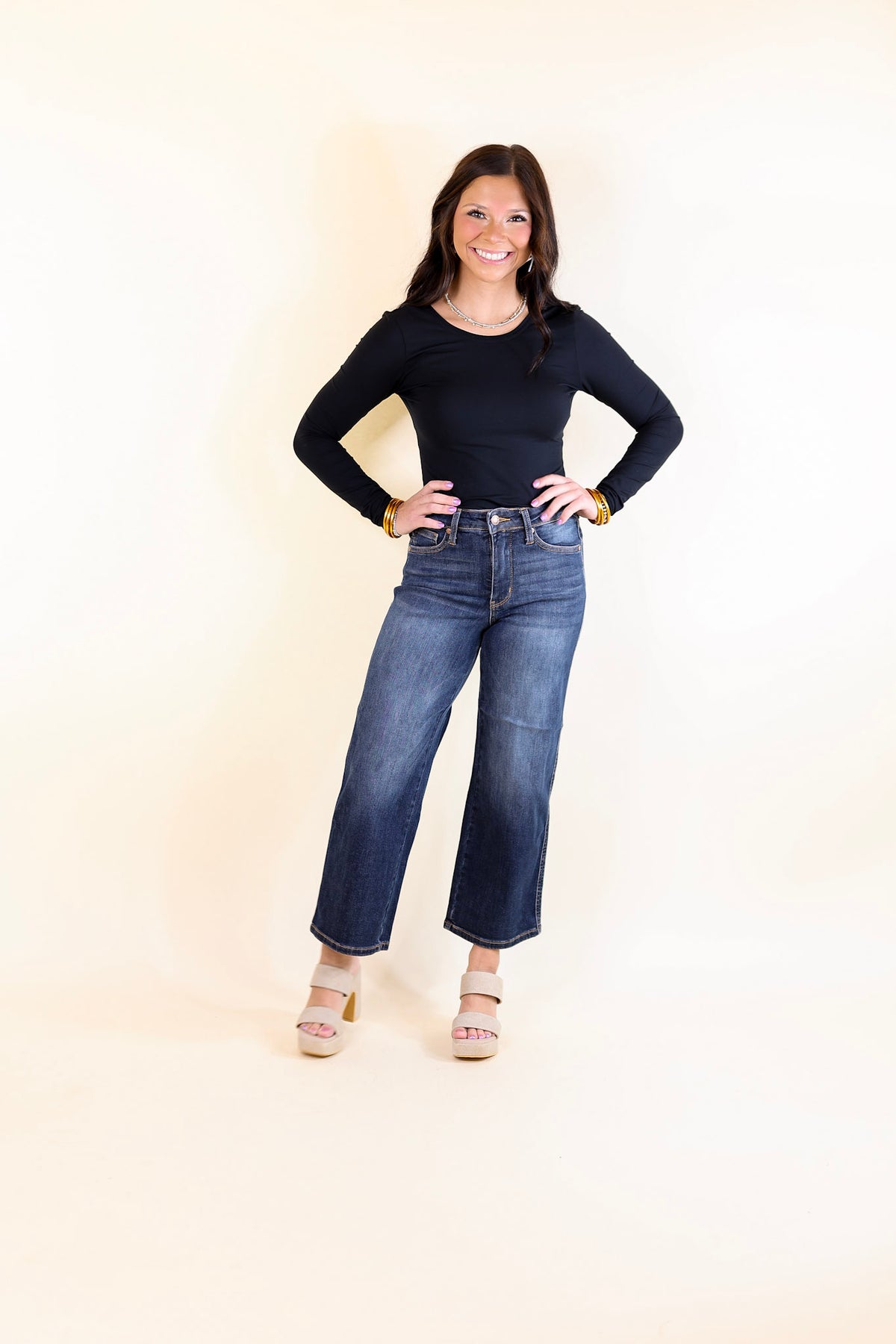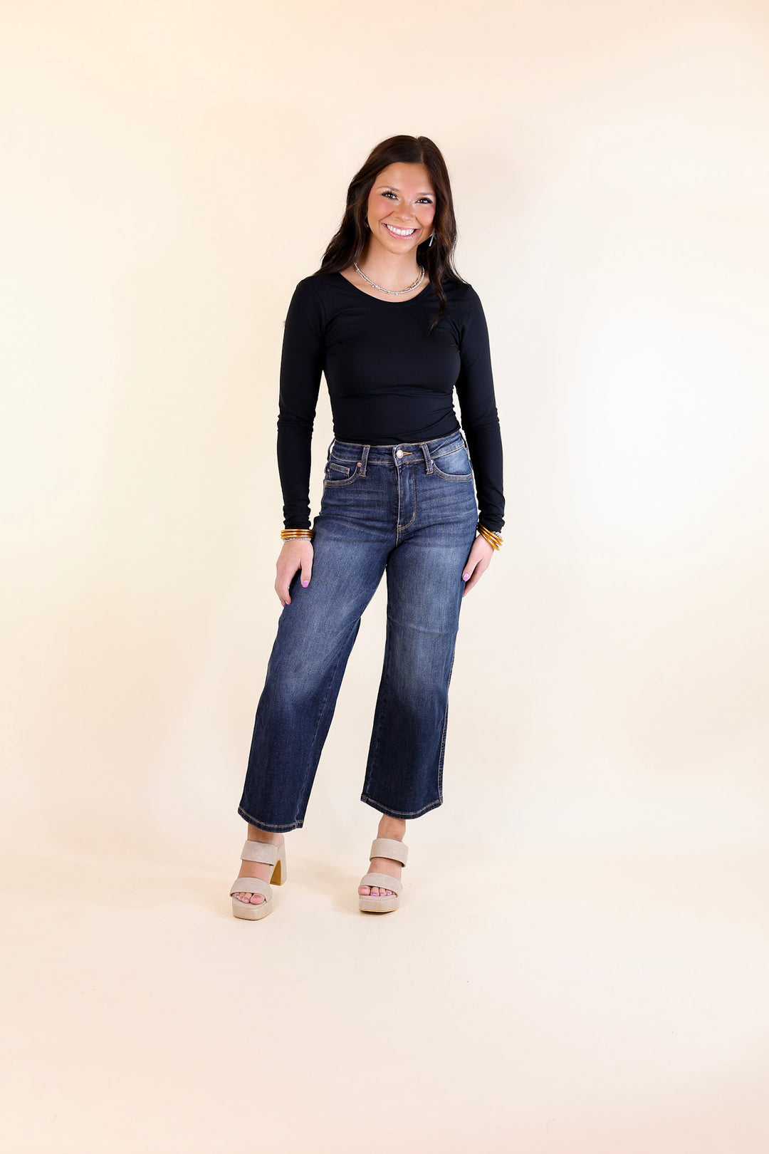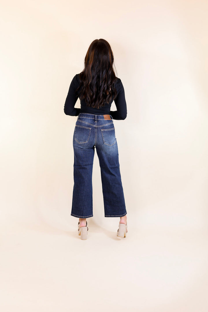Last Chance Sizes 0, 1, 3, 15, 20W, 22W, 24W | Judy Blue | Sleek Statement Tummy Control Cropped Wide Leg Jean in Dark Wash