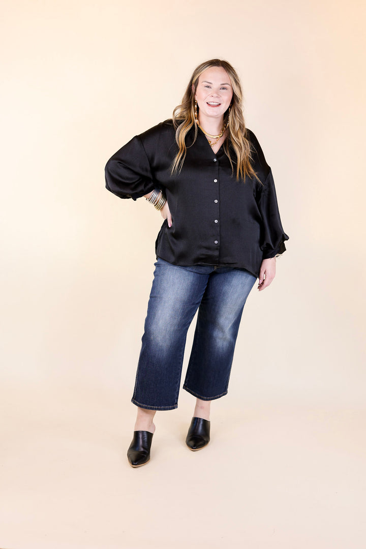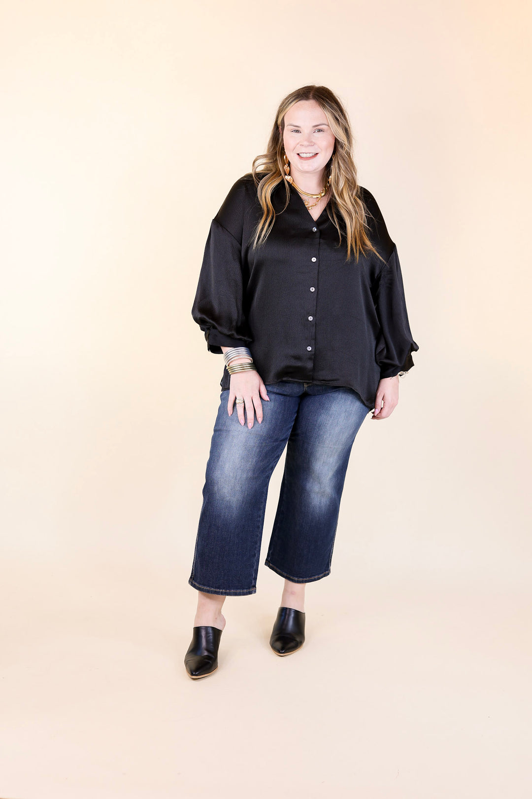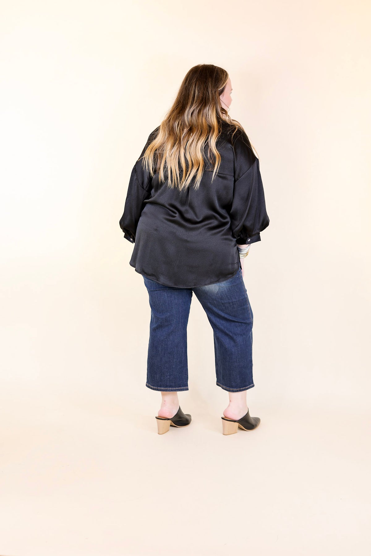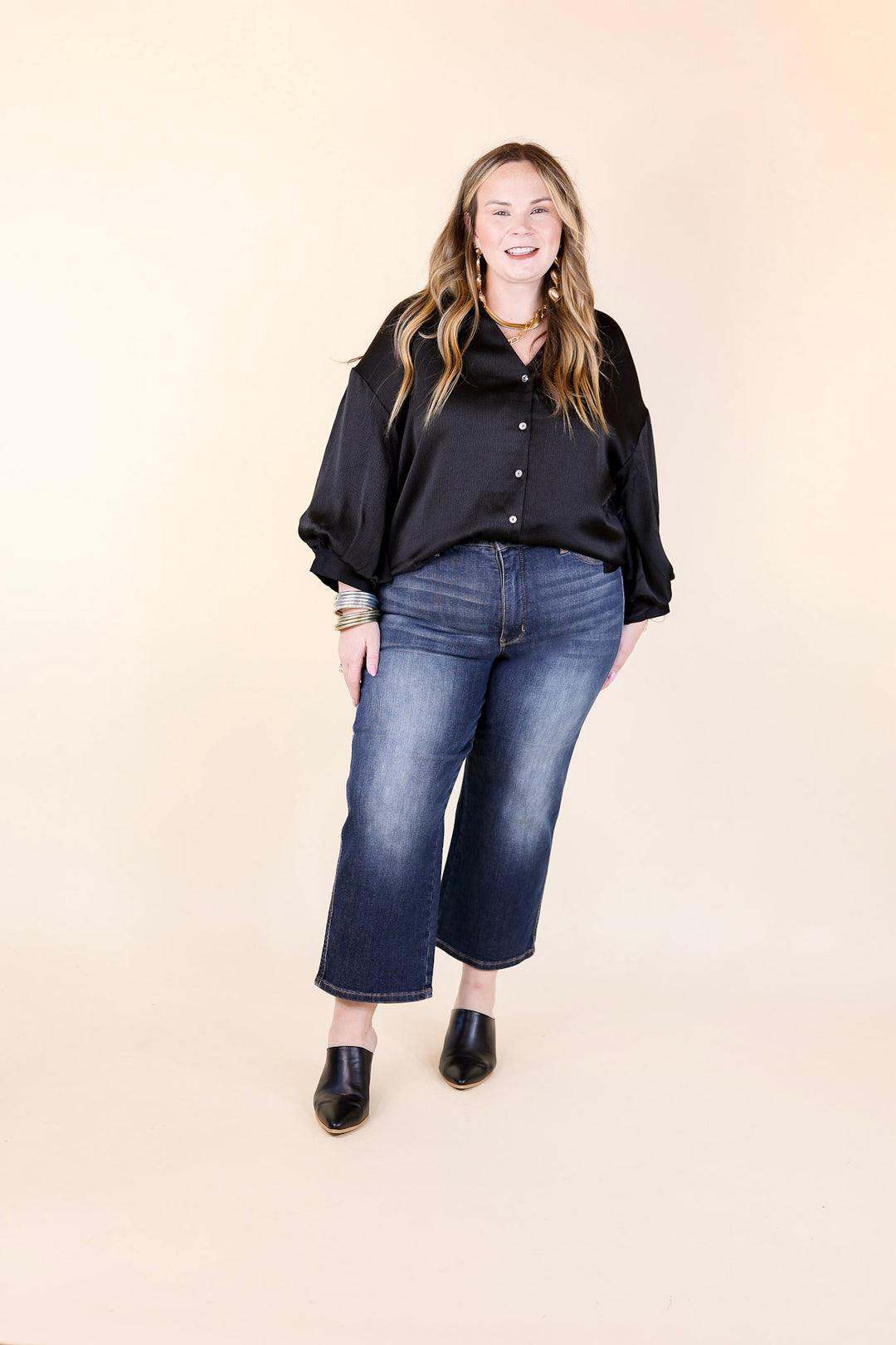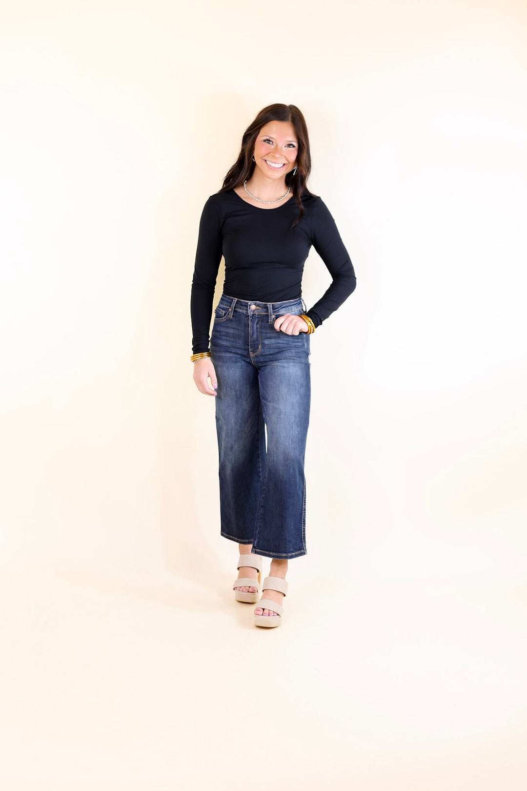 Last Chance Sizes 0, 1, 3, 15, 20W, 22W, 24W | Judy Blue | Sleek Statement Tummy Control Cropped Wide Leg Jean in Dark Wash