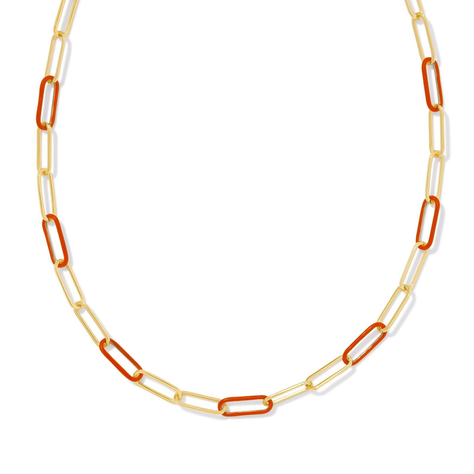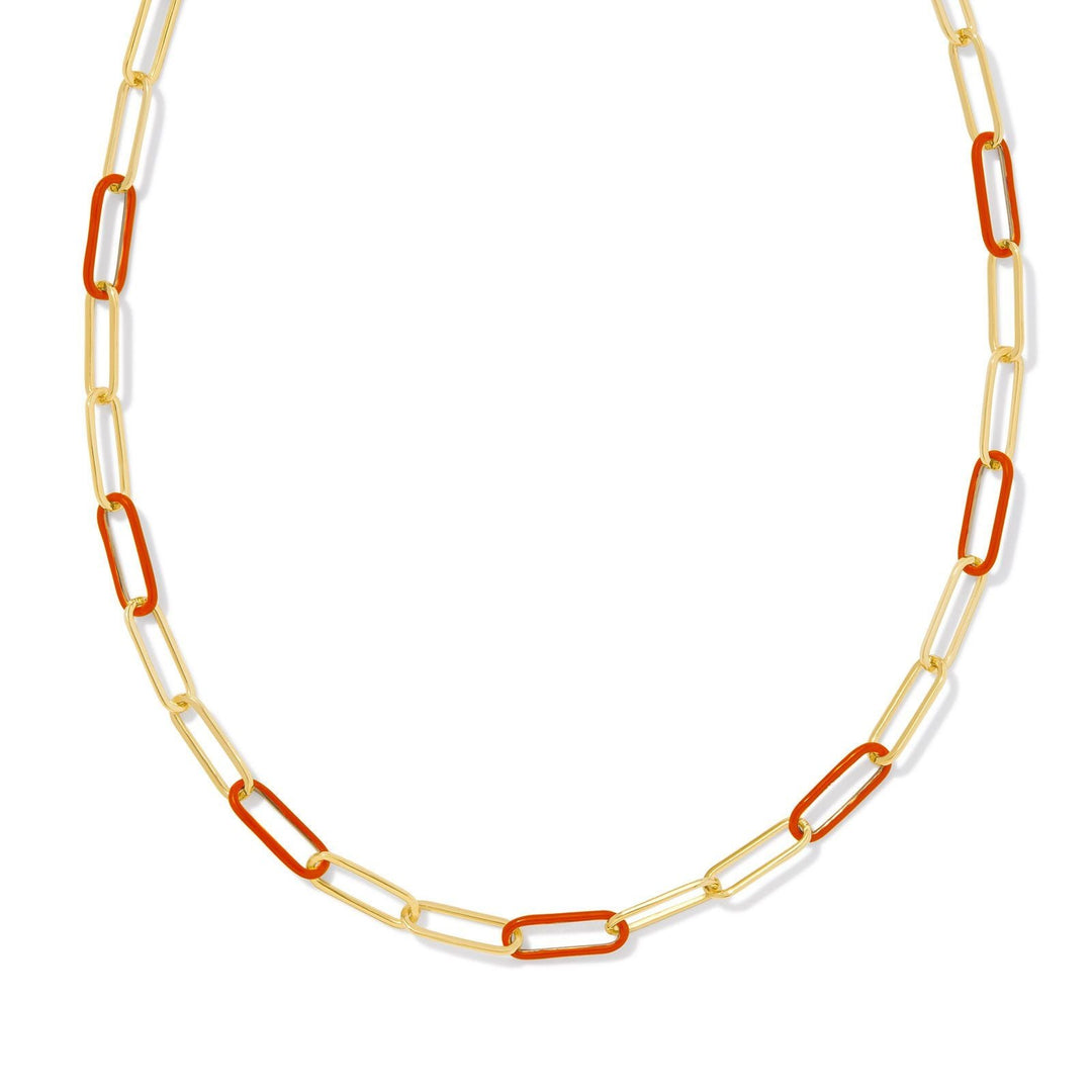 Kendra Scott | Ainsley Gold Convertible Chain Necklace in Orange Enamel