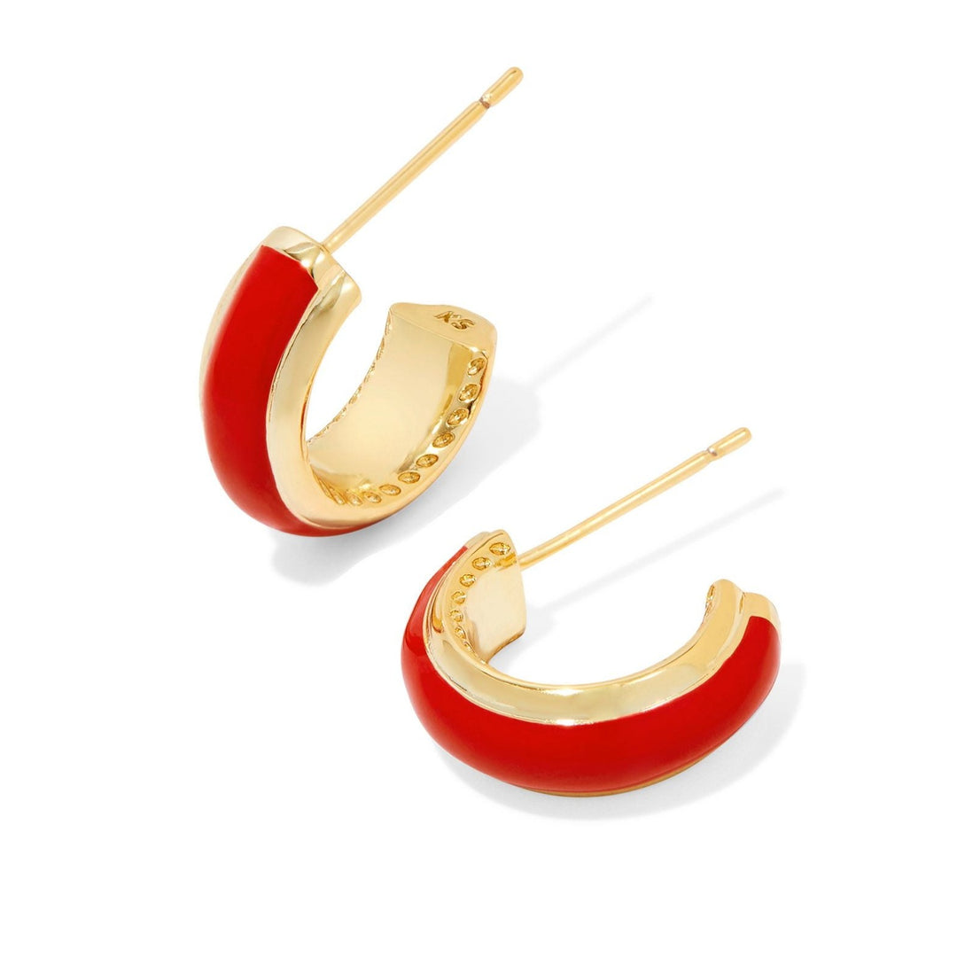 Kendra Scott | Ainsley Gold Huggie Earrings in Red Enamel