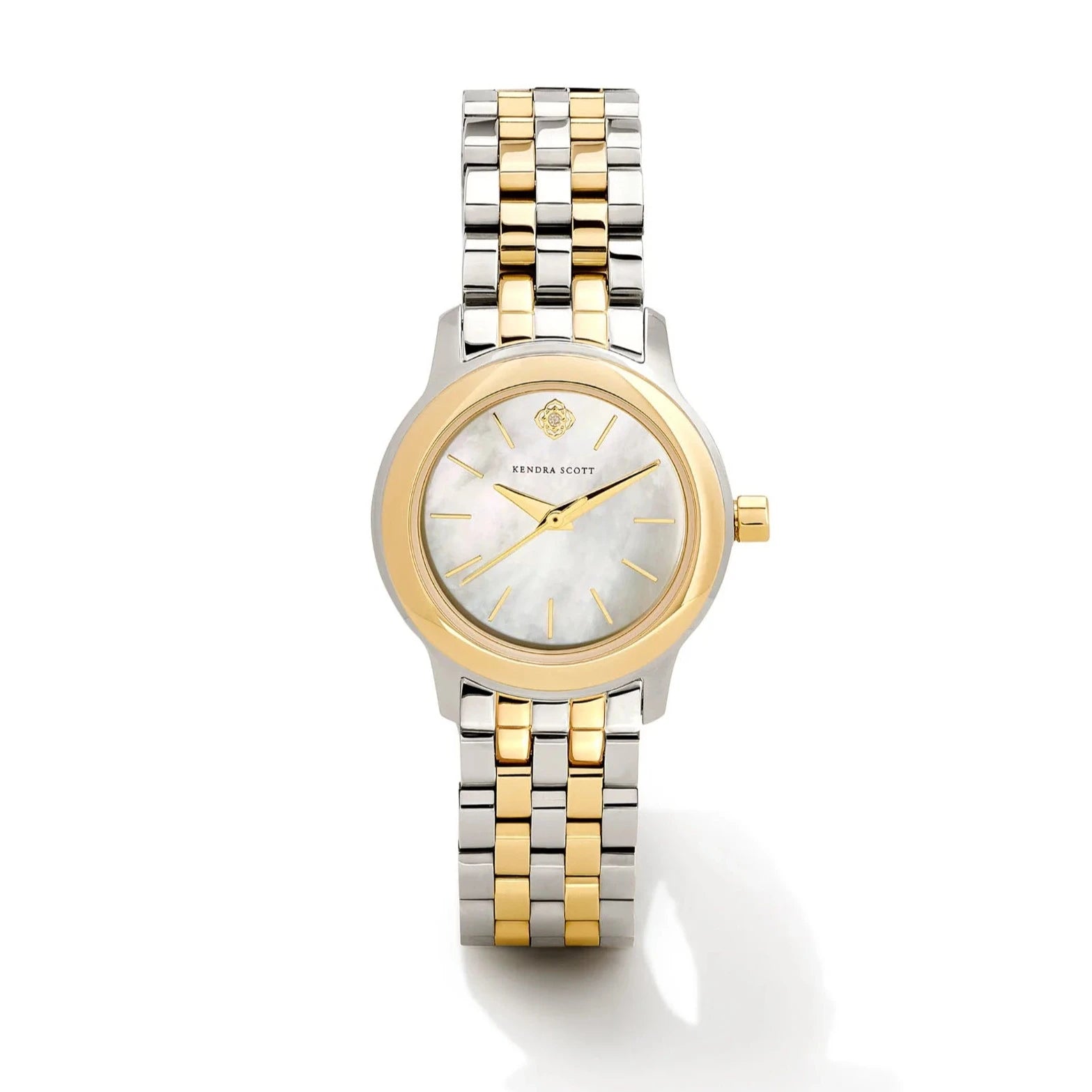 Kendra Scott | Alex Two Tone Stainless Steel 28mm Watch in Ivory Mother-of-Pearl