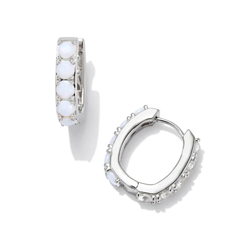 Kendra Scott | Chandler Silver Huggie Earrings in White Opalite Mix