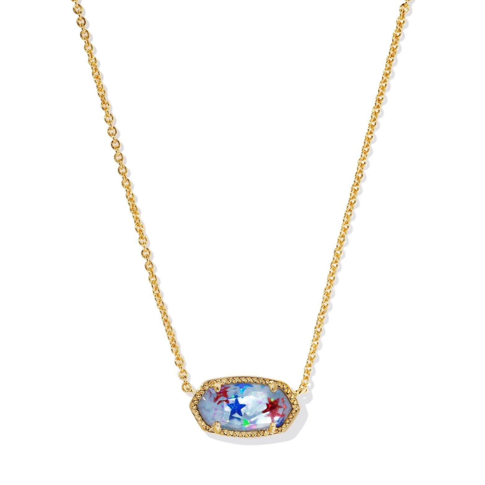 A dainty stone and delicate metallic chain combine to create the Elisa Gold Pendant Necklace in Red White Blue Star Illusion, your new favorite wear-anywhere accessory. This pendant necklace can be paired with any look, providing that extra touch of timeless style. Make the Elisa Pendant Necklace a staple in your wardrobe and you will not be disappointed. Pair with our matching earrings to complete the look!