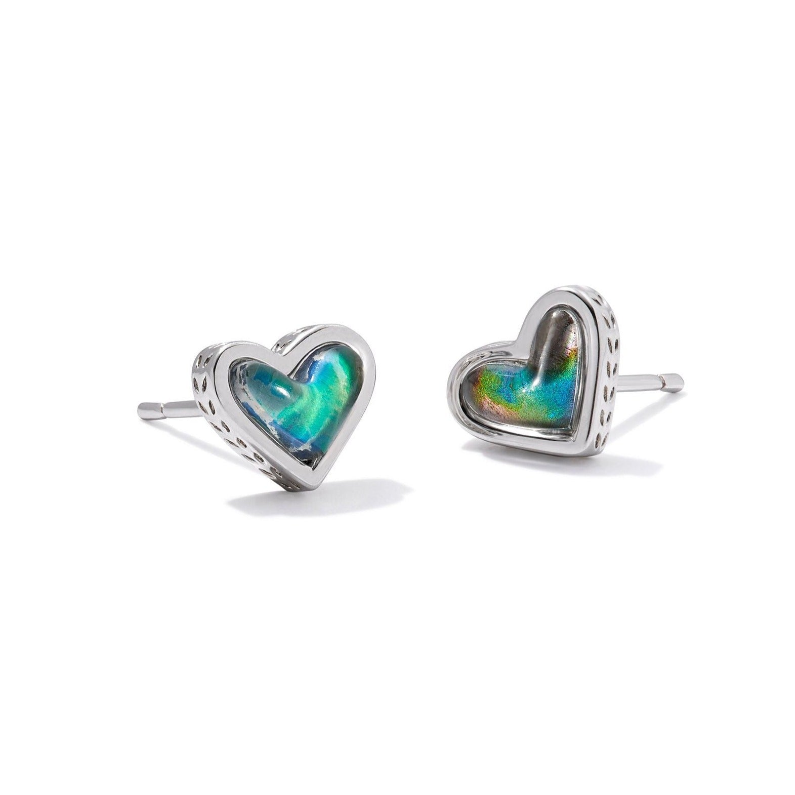 Kendra Scott | Framed Ari Heart Silver Stud Earrings in Mood Stone