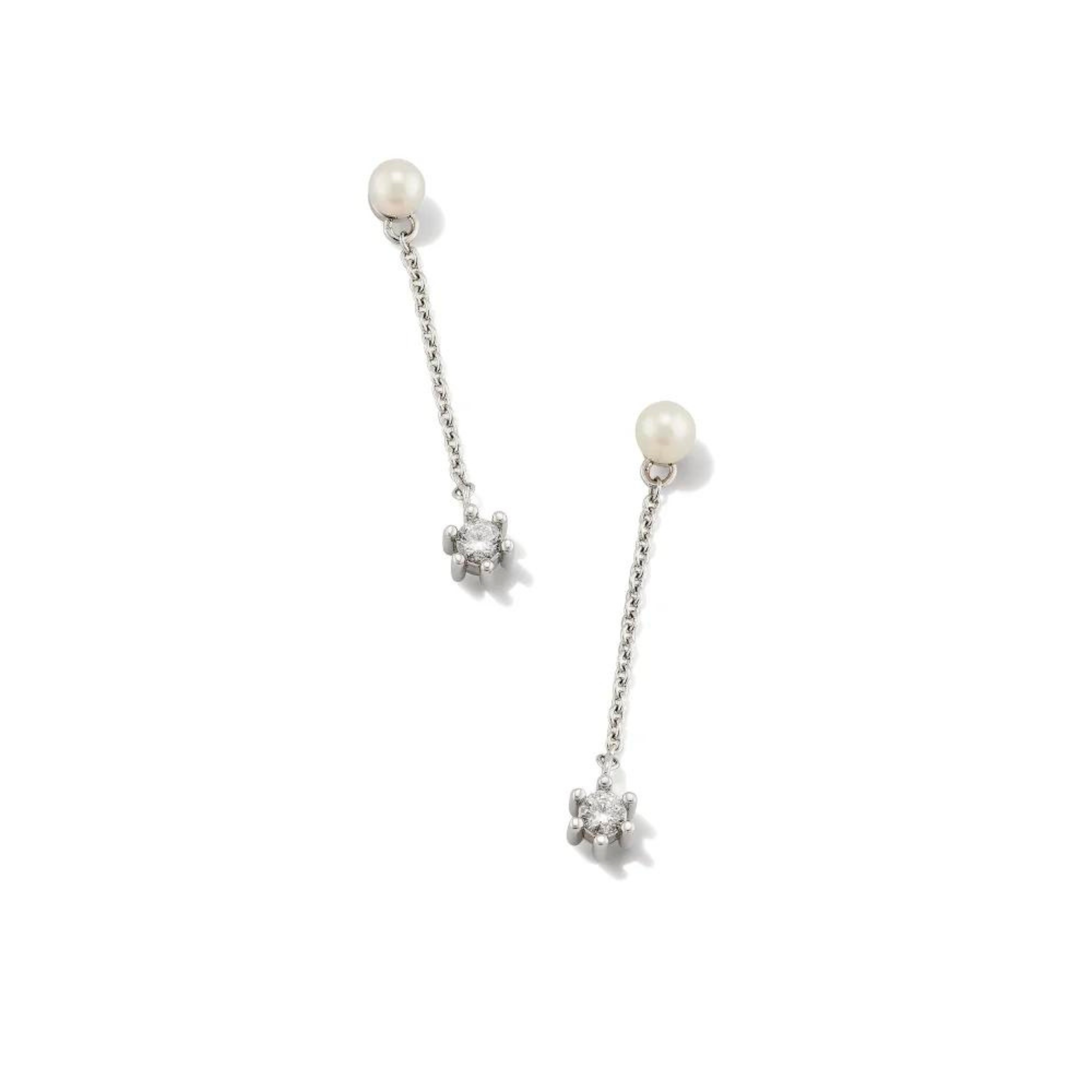 Kendra Scott | Leighton Silver Pearl Linear Earrings in White Pearl