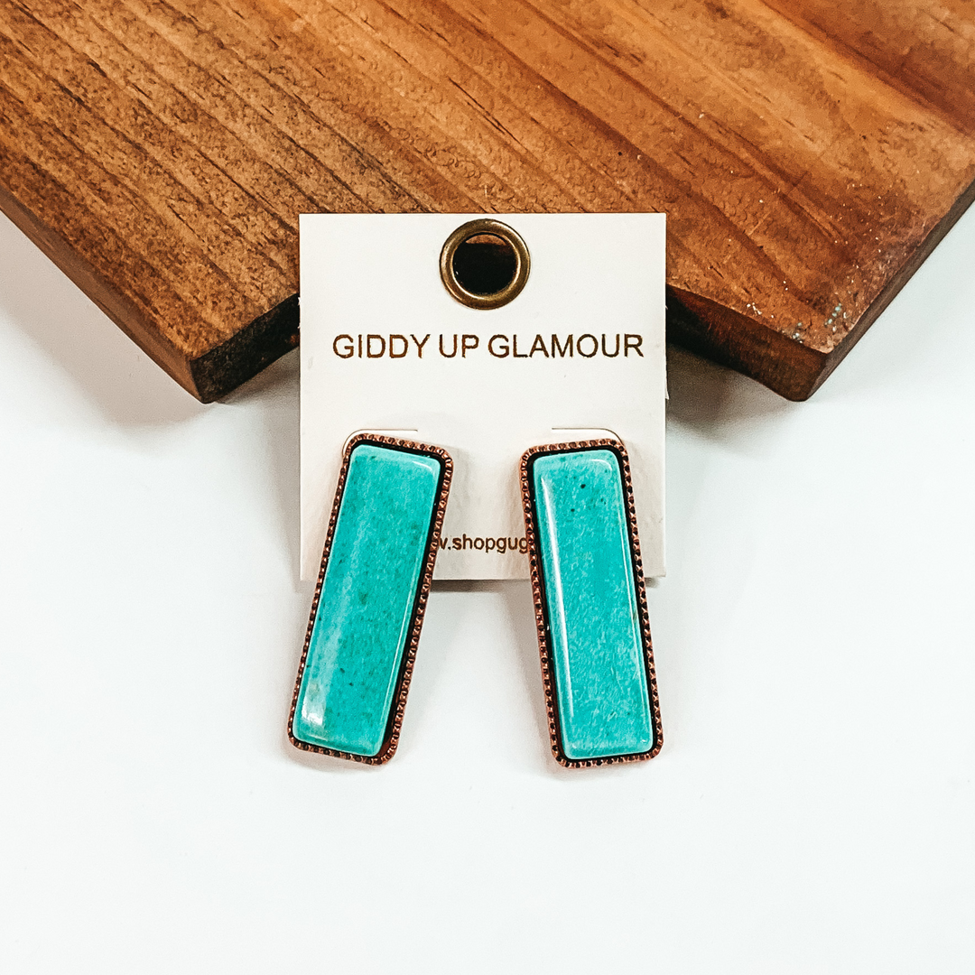 Large Rectangle Faux Stone Copper Tone Earrings in Turquoise