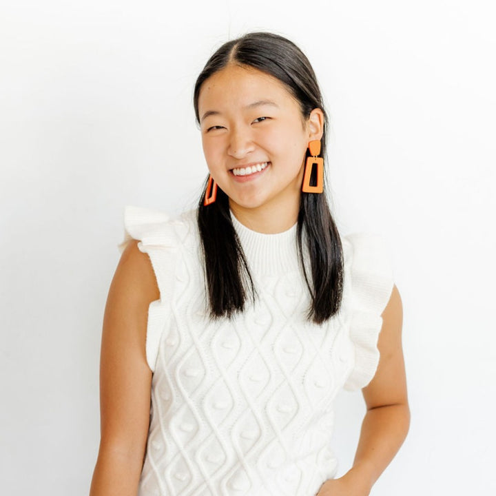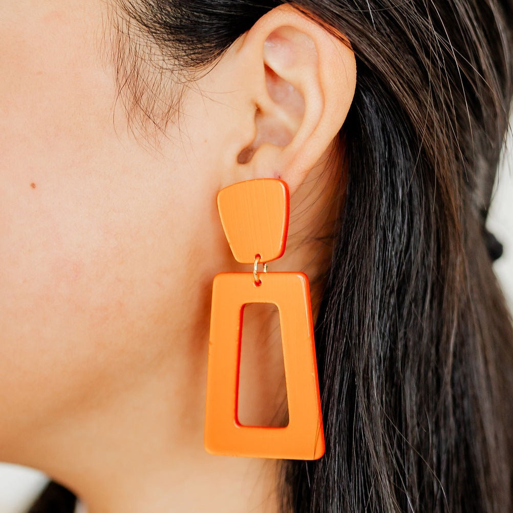 Linny Co | Kennedy Rectangular Drop Earrings in Metallic Orange