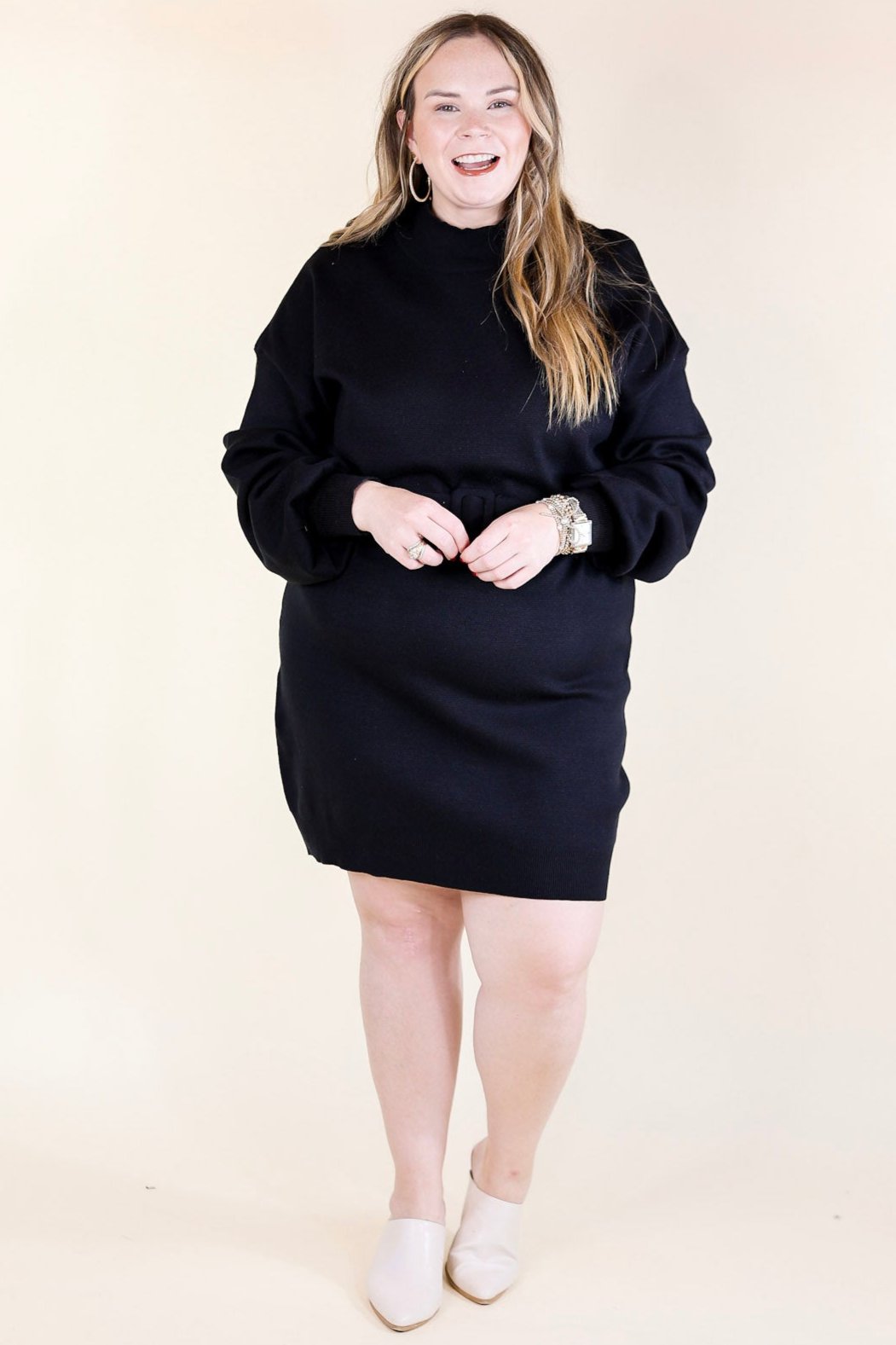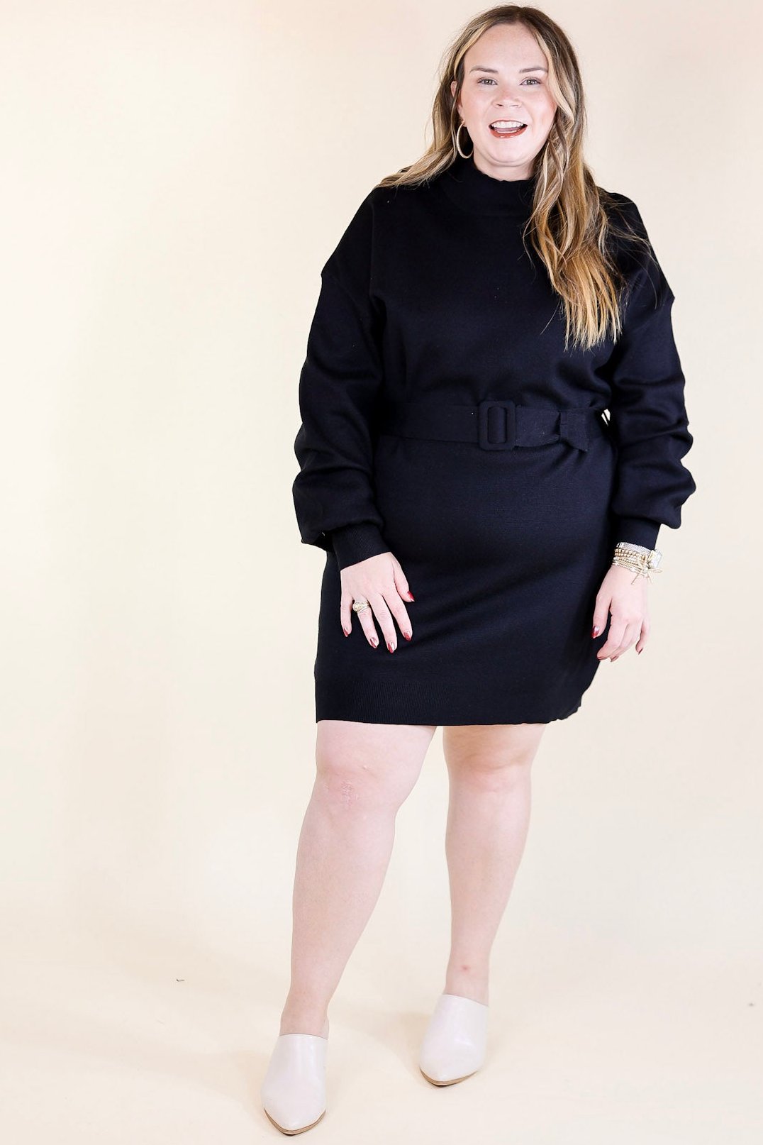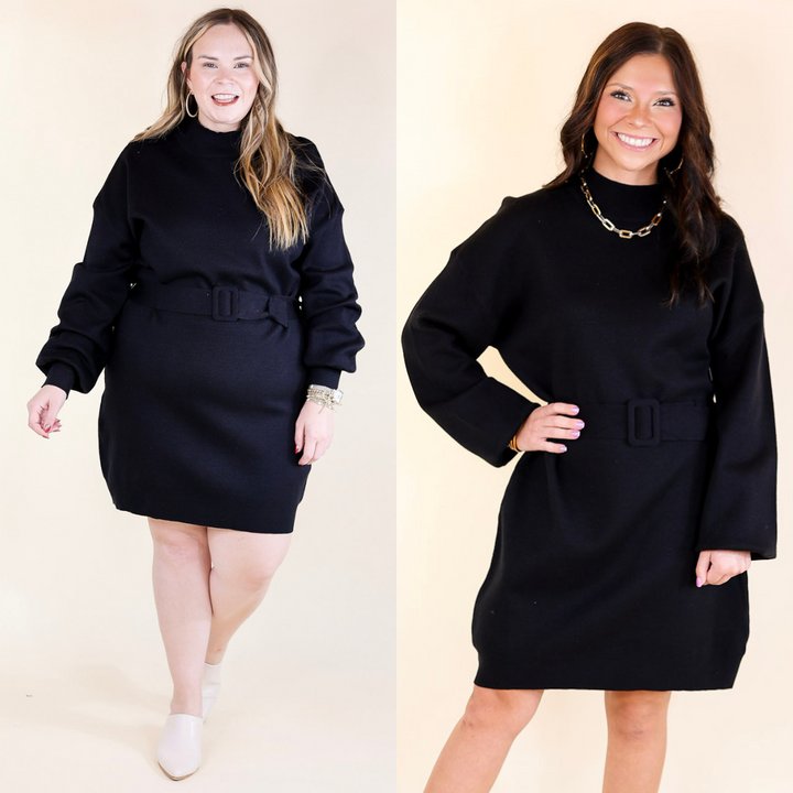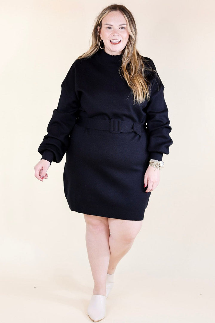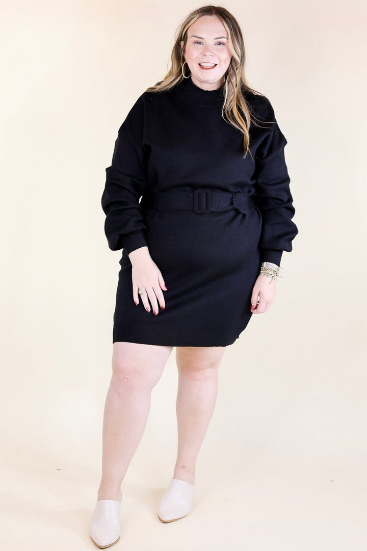 Luxurious Life Sweater Dress with Belt in Black