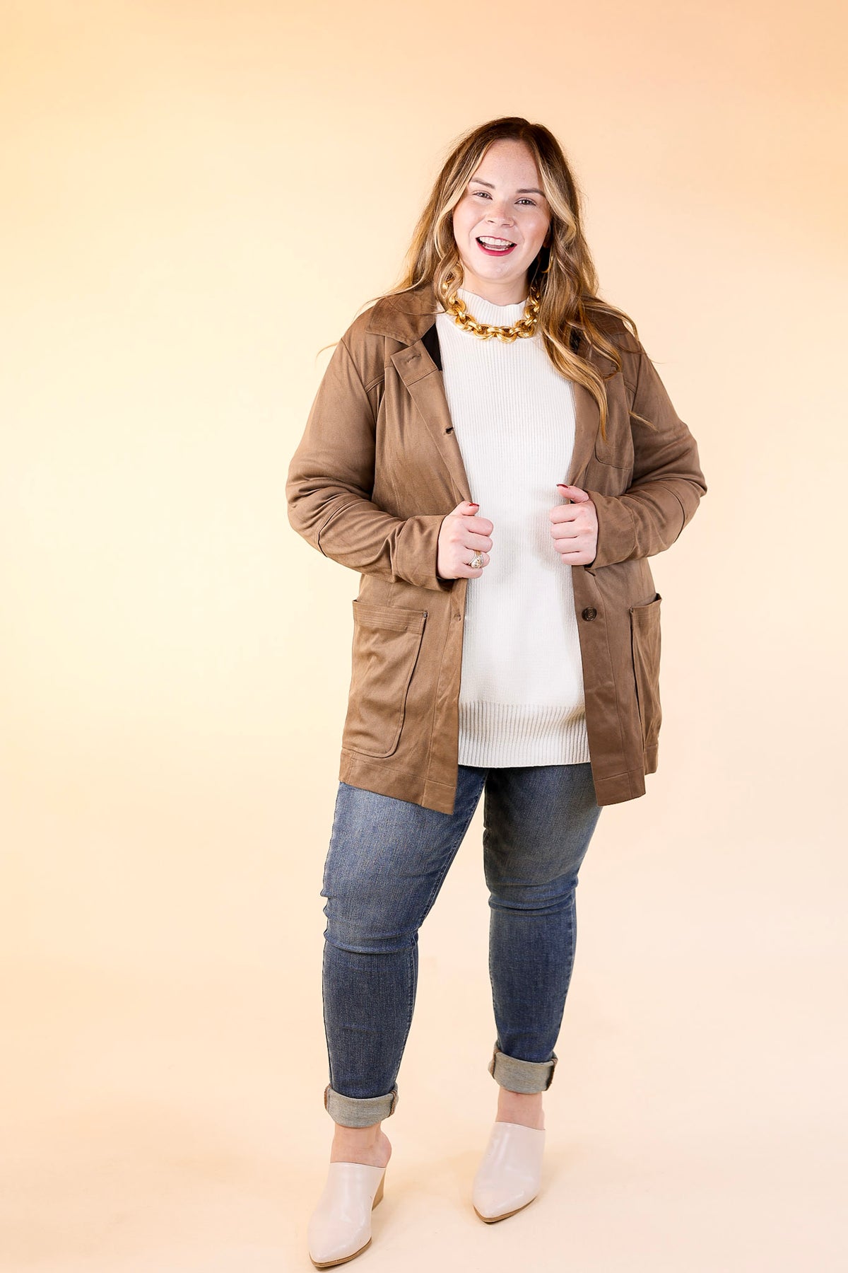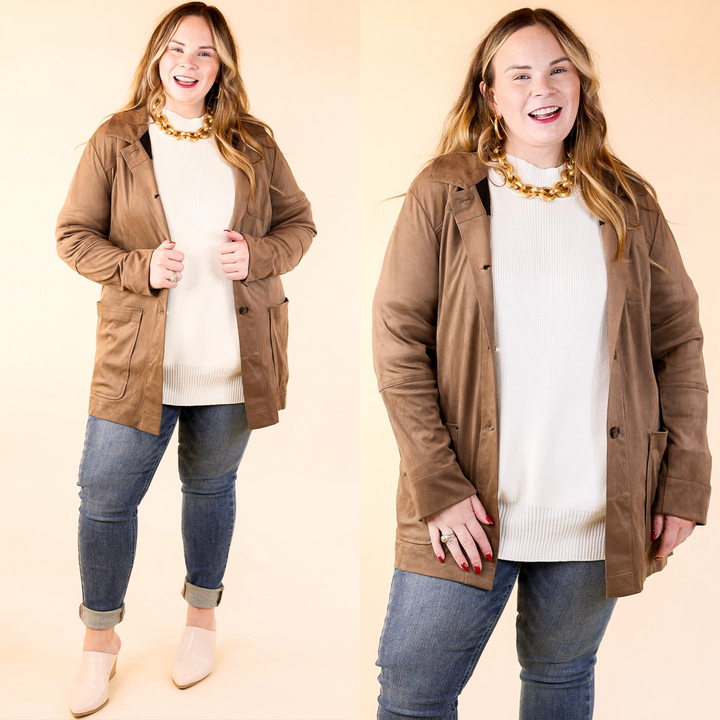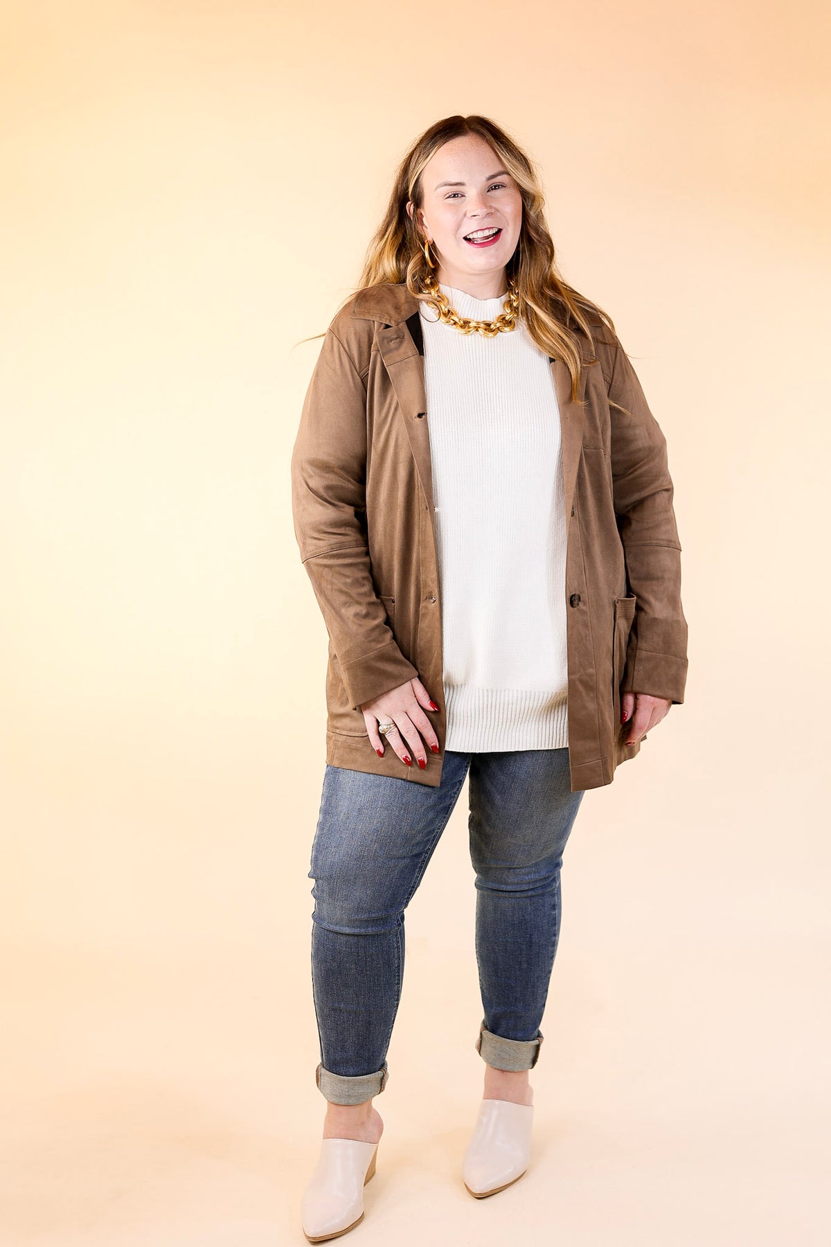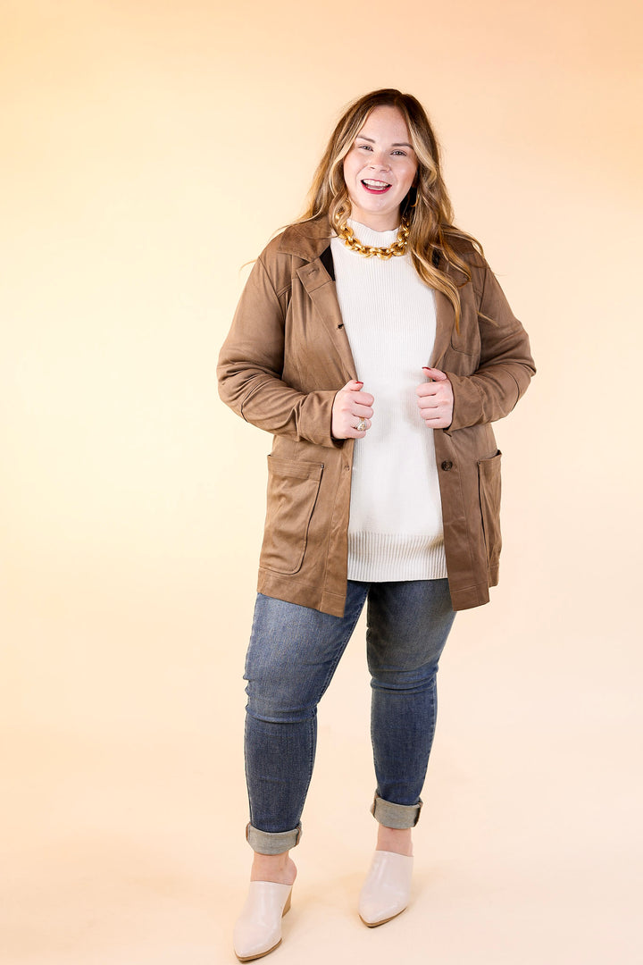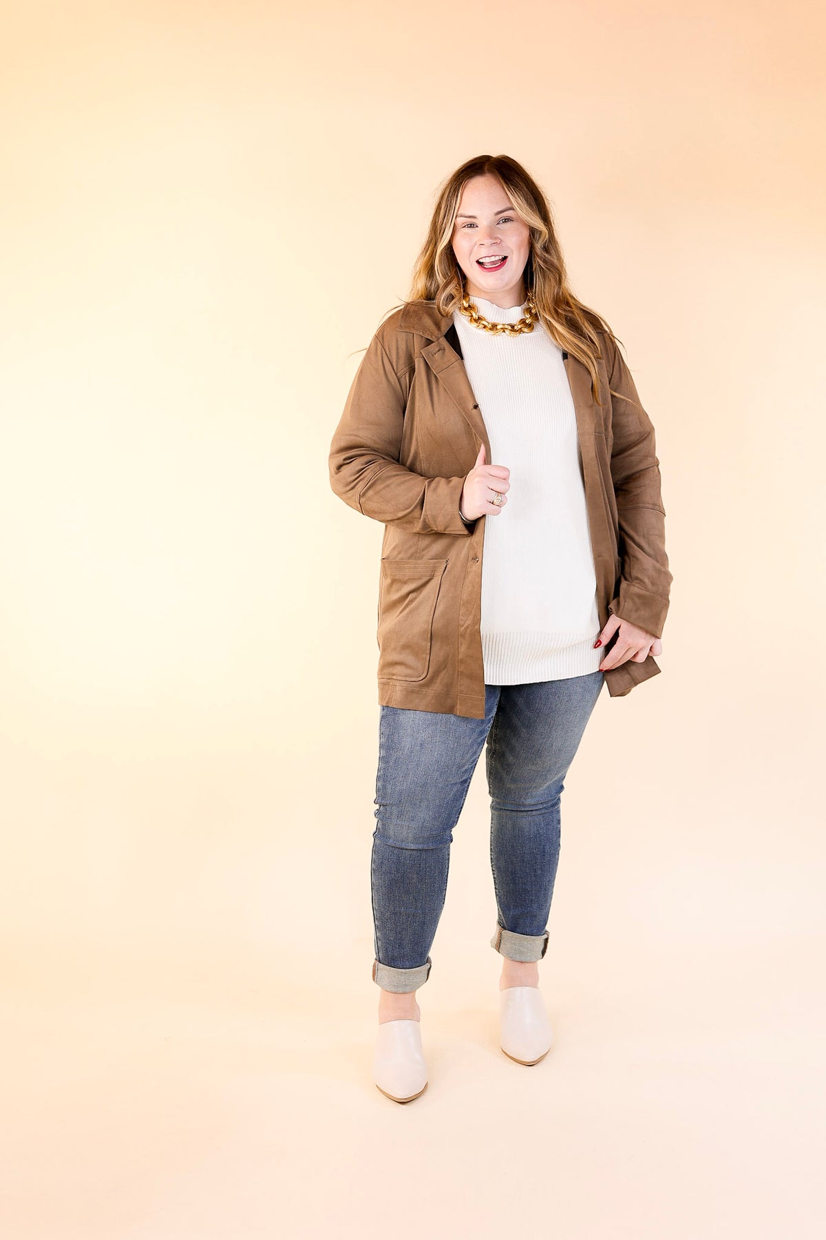 Lyssé | Abigail Suede Button Up Jacket in Chestnut Brown