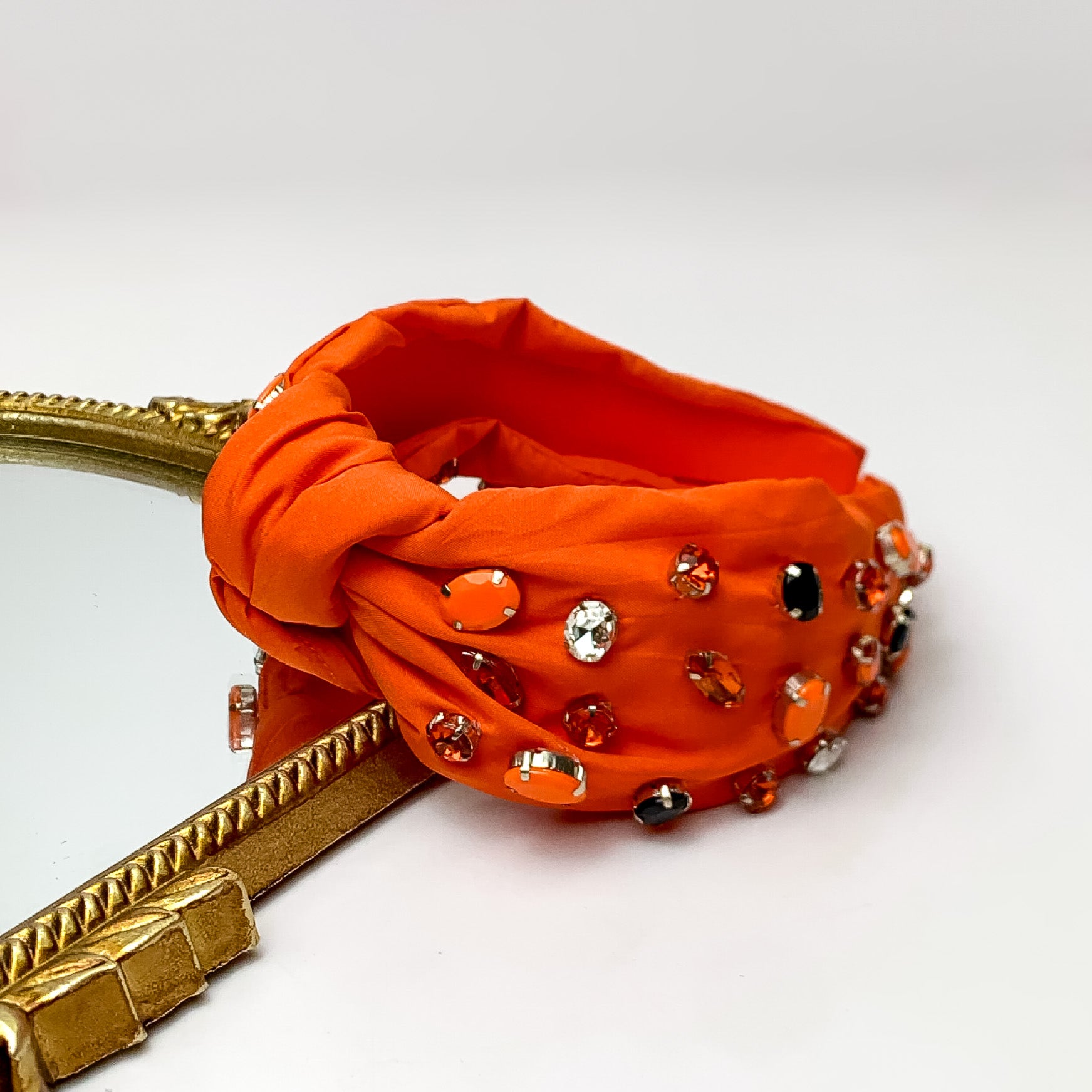 Multicolor Crystal Detailed Knot Headband in Orange - Giddy Up Glamour Boutique