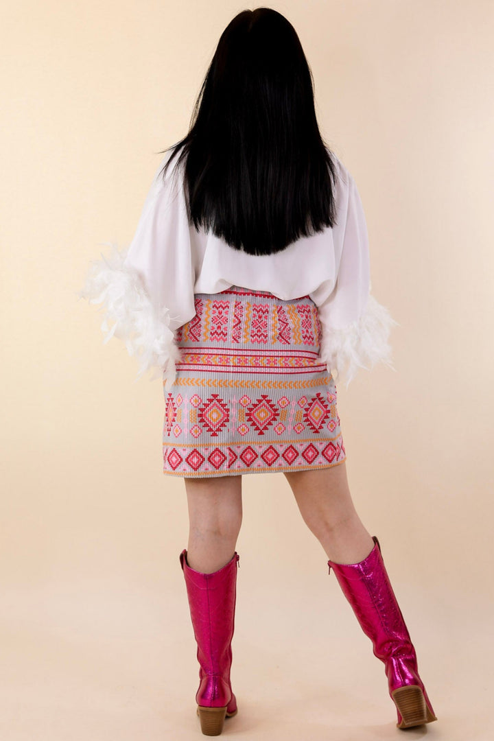 Music For The Soul Corduroy Aztec Print Mini Skirt in Grey