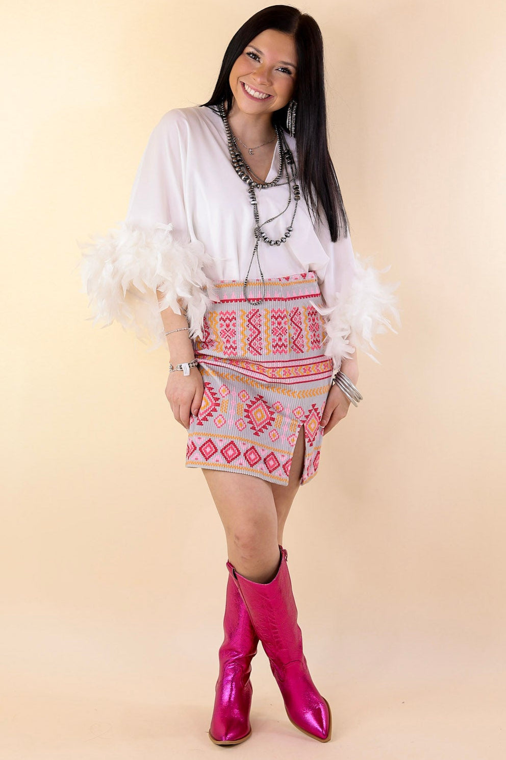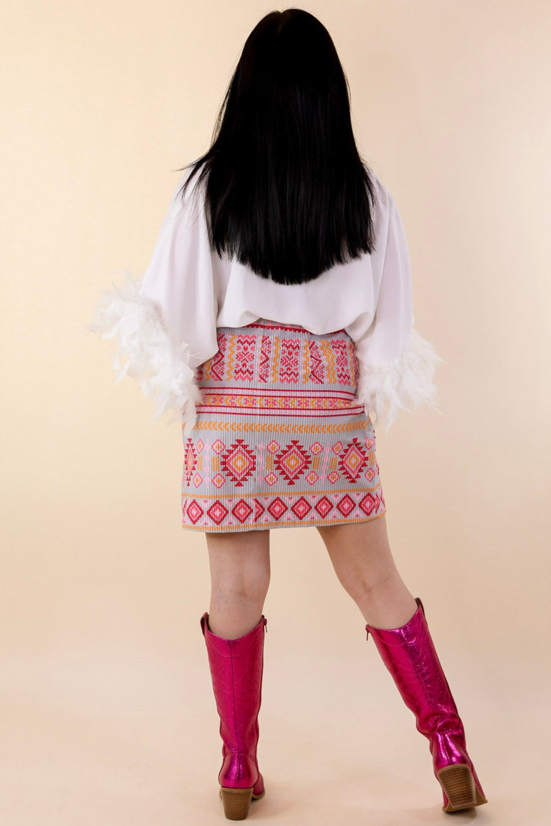 This adorable set is like music to the soul! This skirt includes a corduroy body, a cute Aztec print, and a zip closure on the hip. Pair it with the matching jacket and fun booties and you'll be a showstopper!