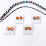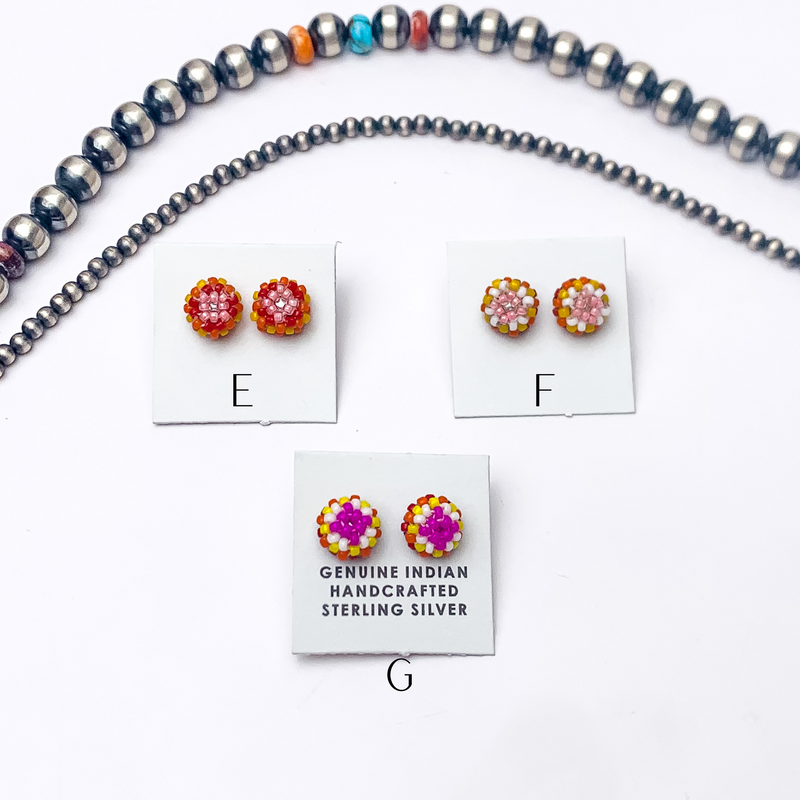 Navajo | Navajo Handmade Beaded Stud Earrings in Pink, Yellow, and Orange