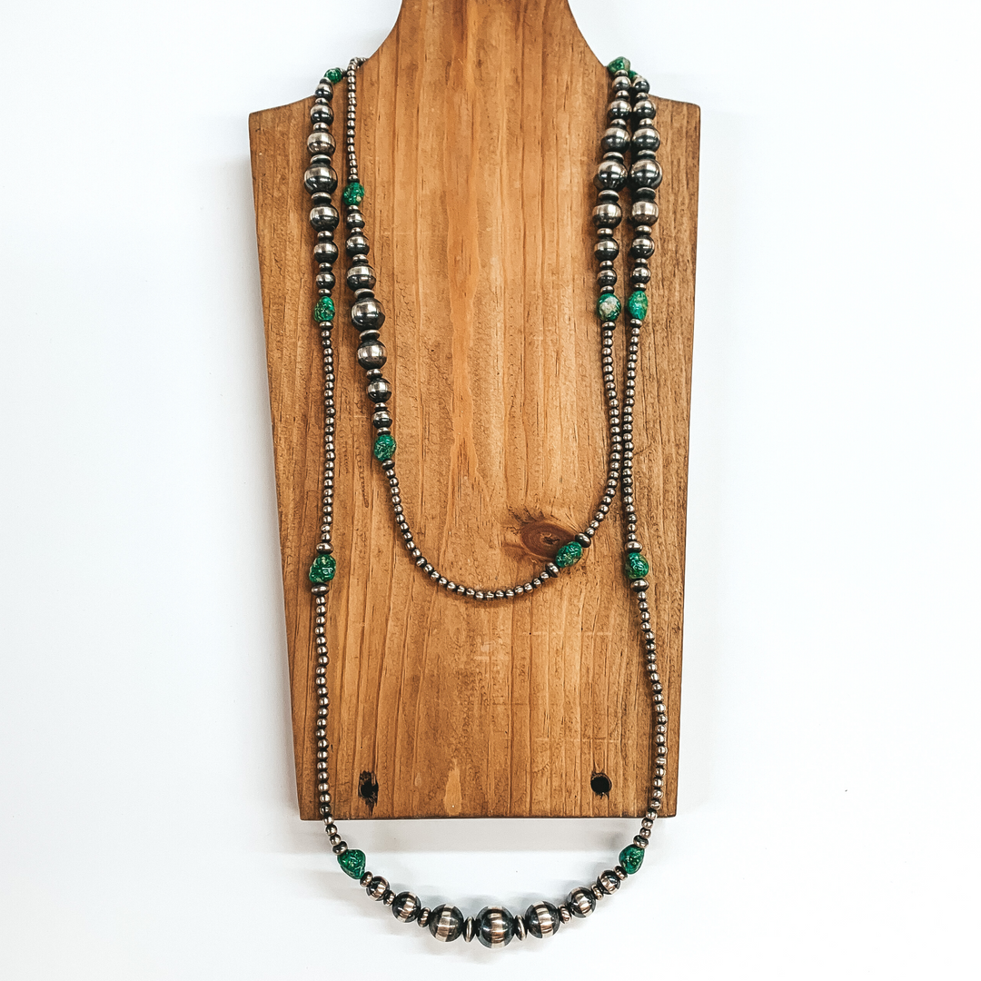 Navajo | Navajo Handmade Sterling Silver Graduated Navajo Pearl Necklace with Turquoise Spacers | 60 inches