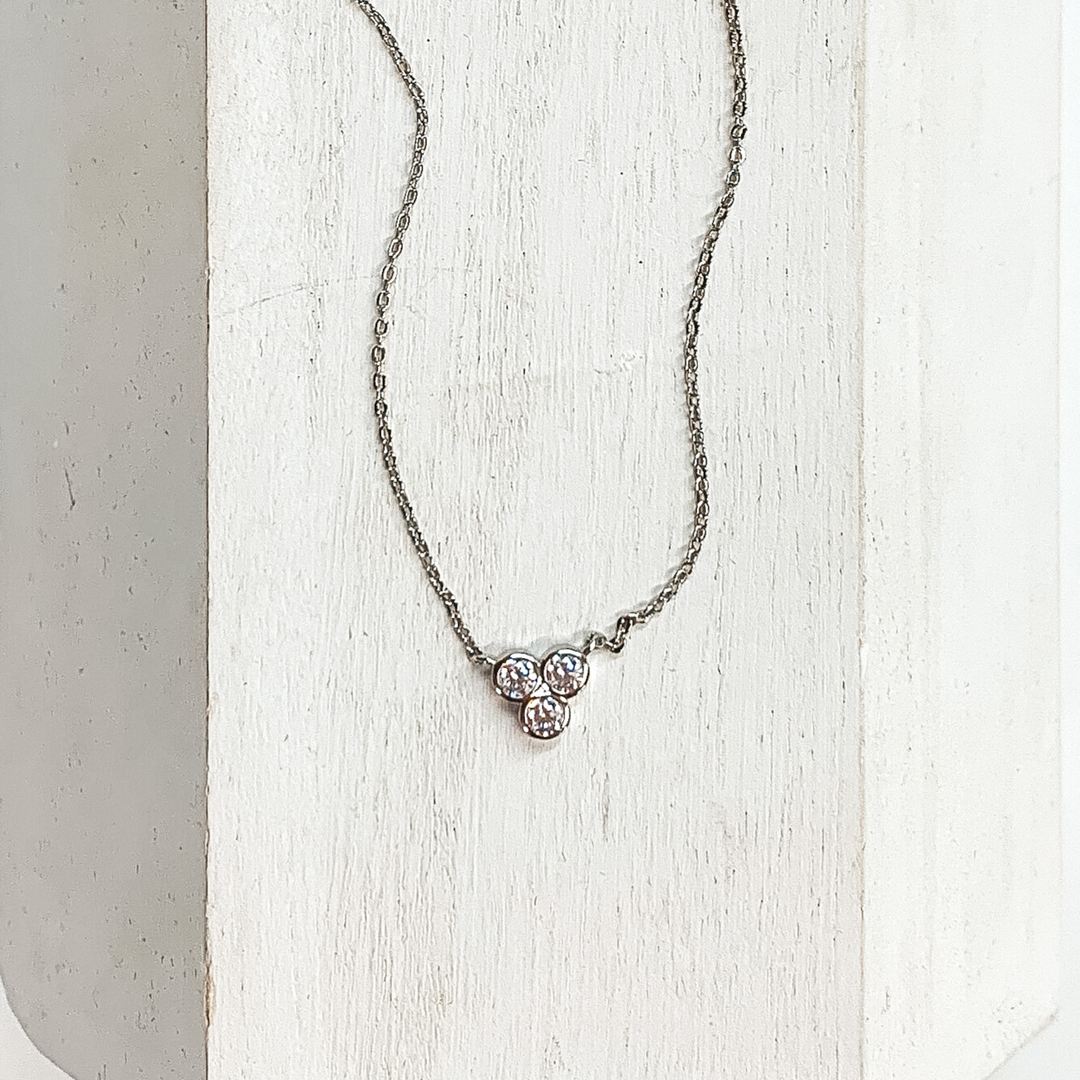 Good Daze Necklace with 3mm CZ Crystals in a Bezel Cluster in Silver