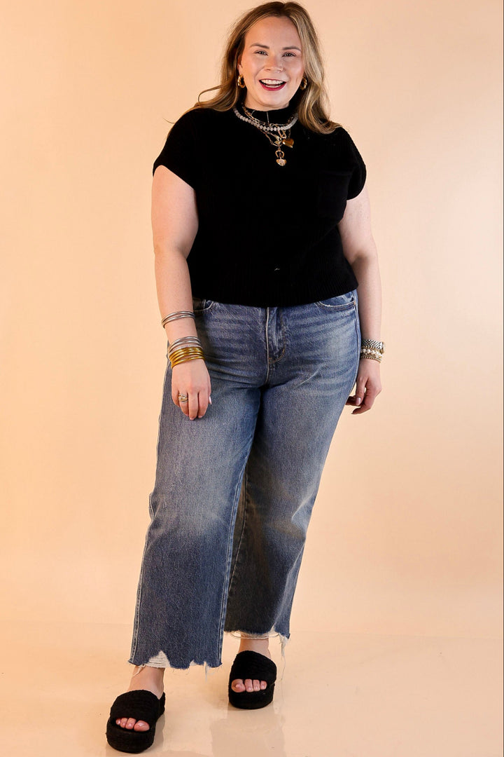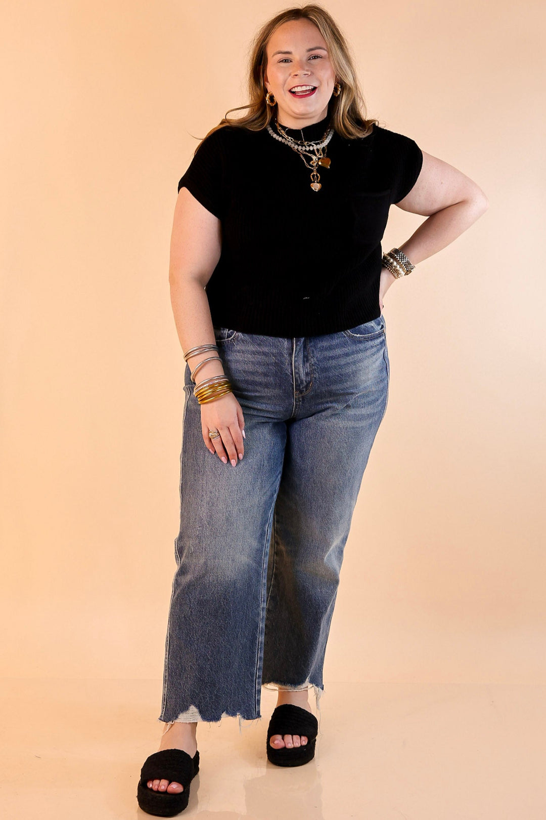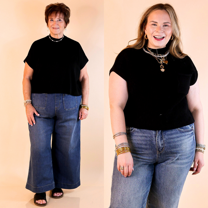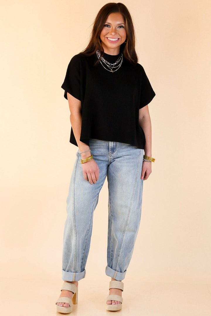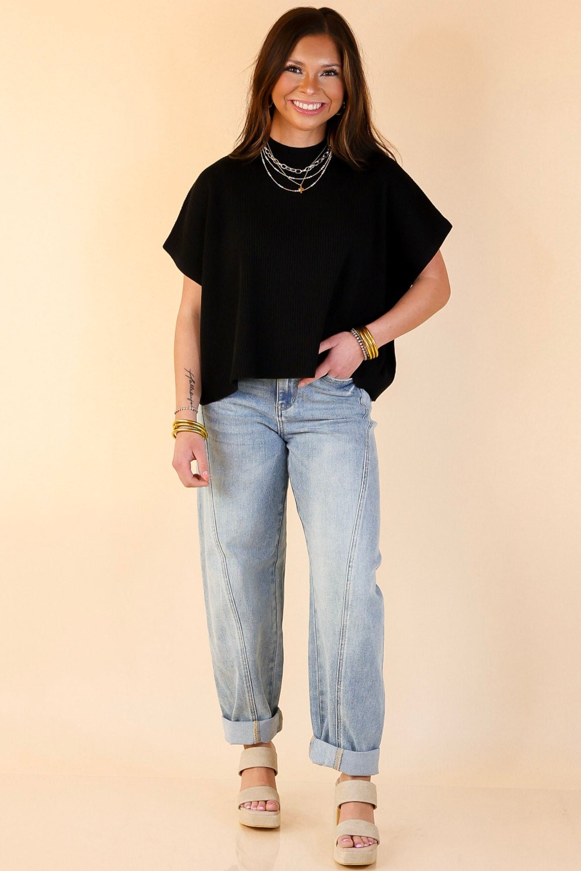 Never Out of Style Short Sleeve Mock Neck Top in Black