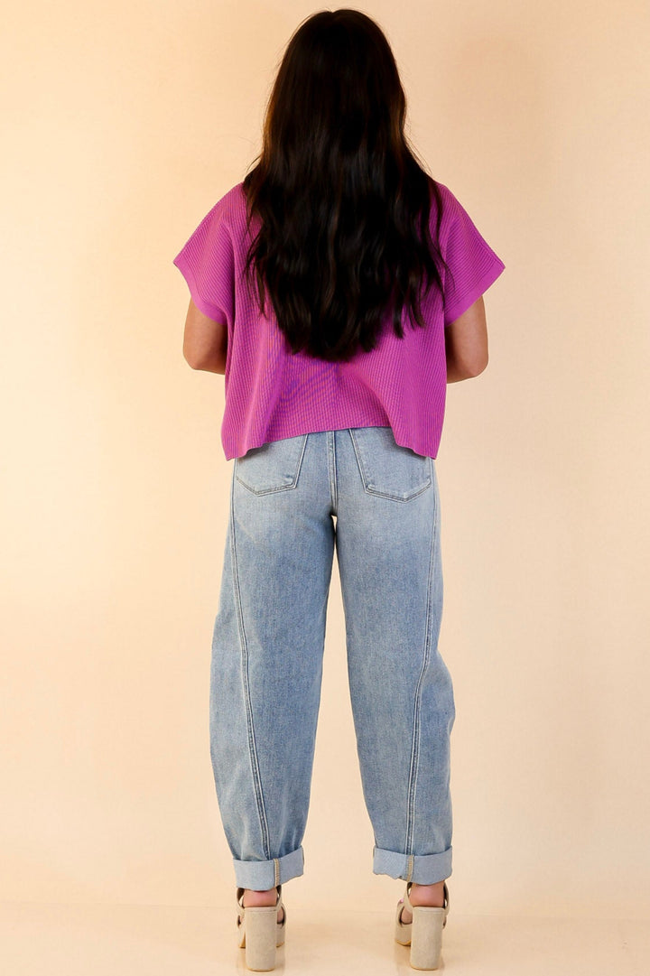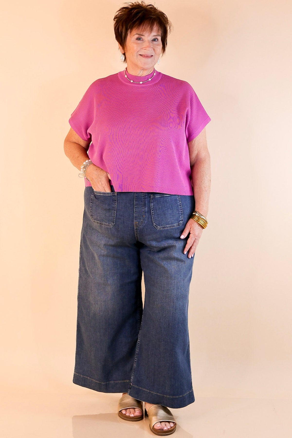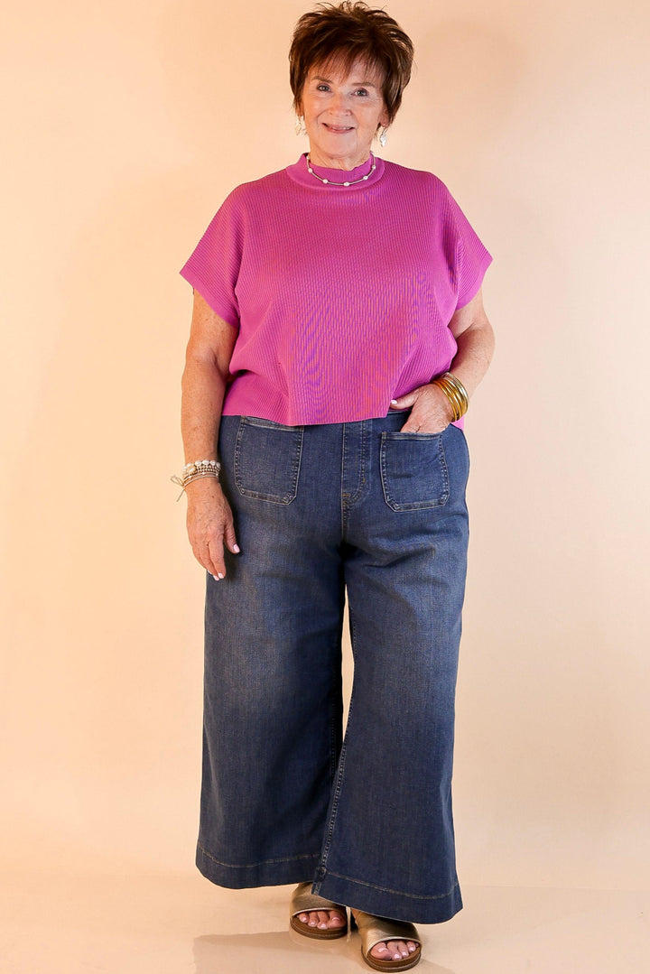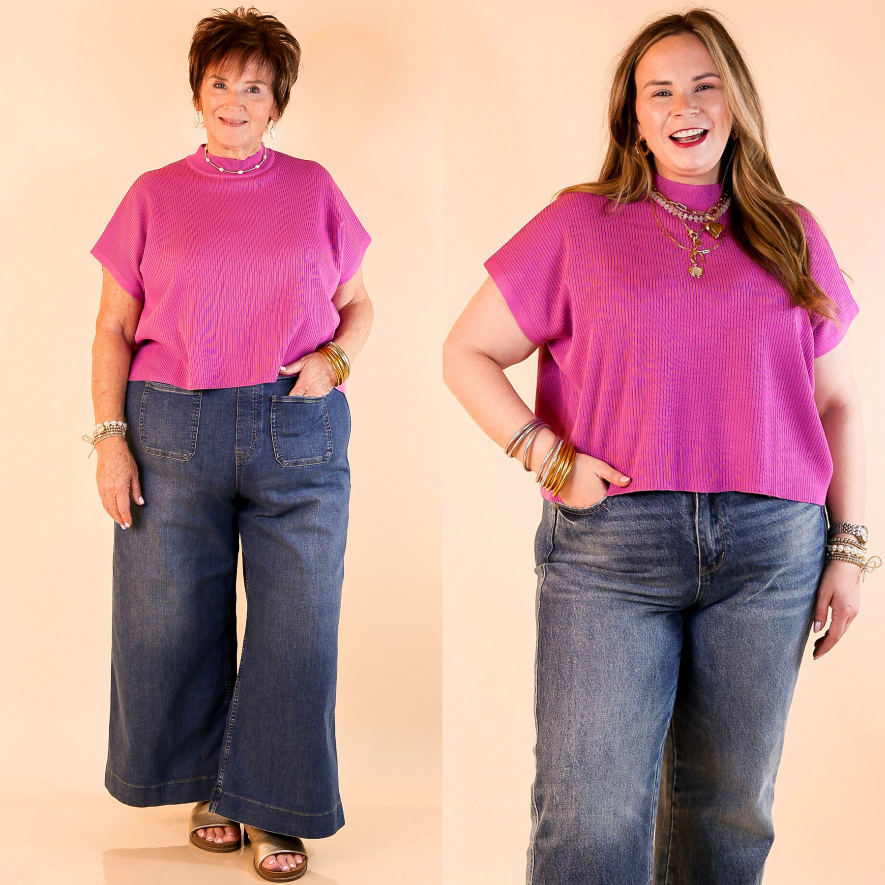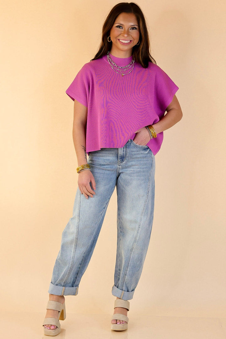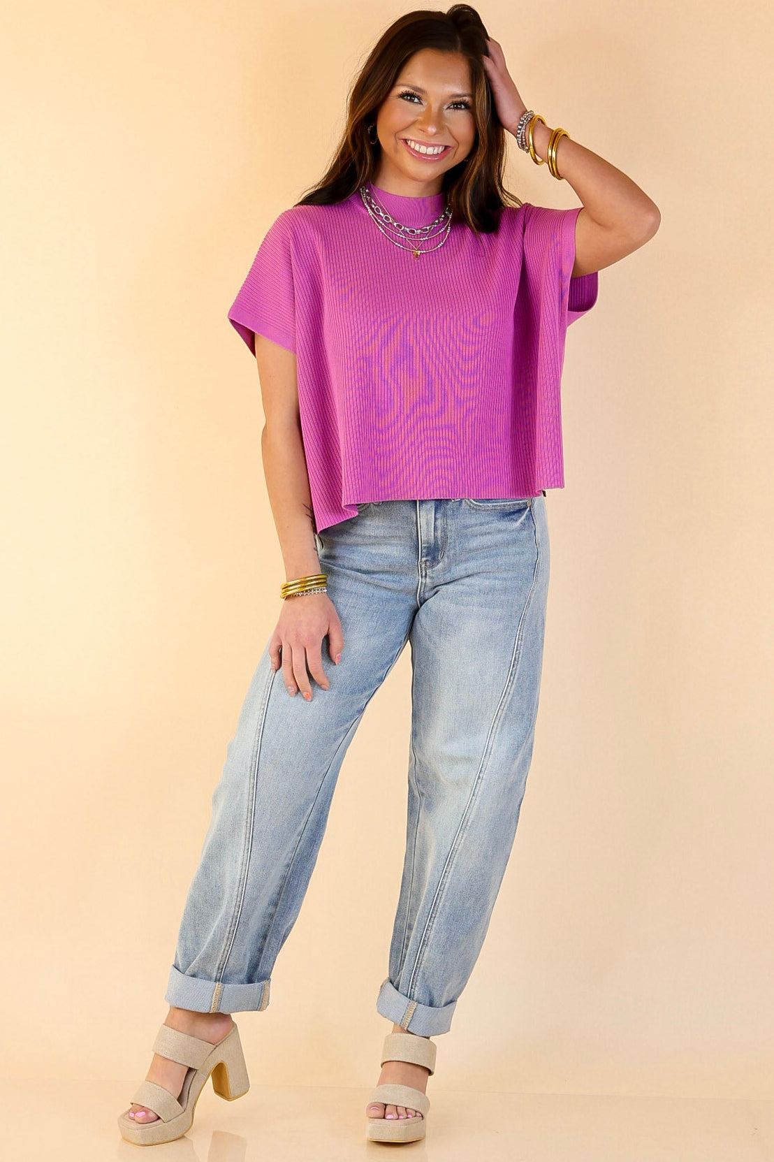 Never Out of Style Short Sleeve Mock Neck Top in Magenta Purple