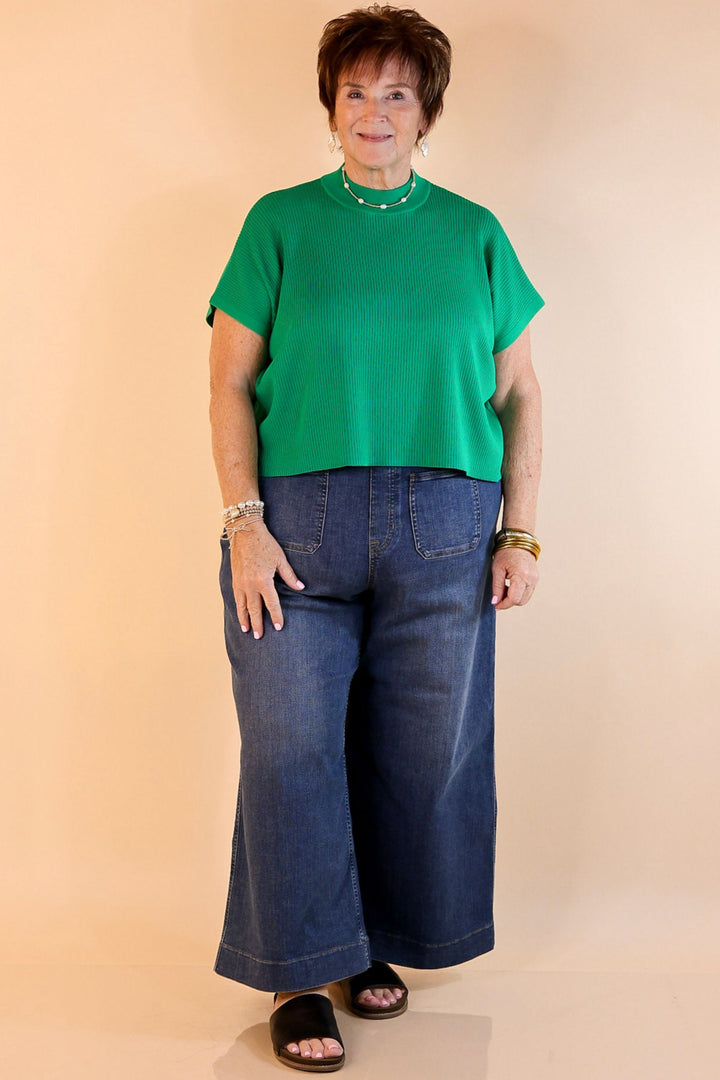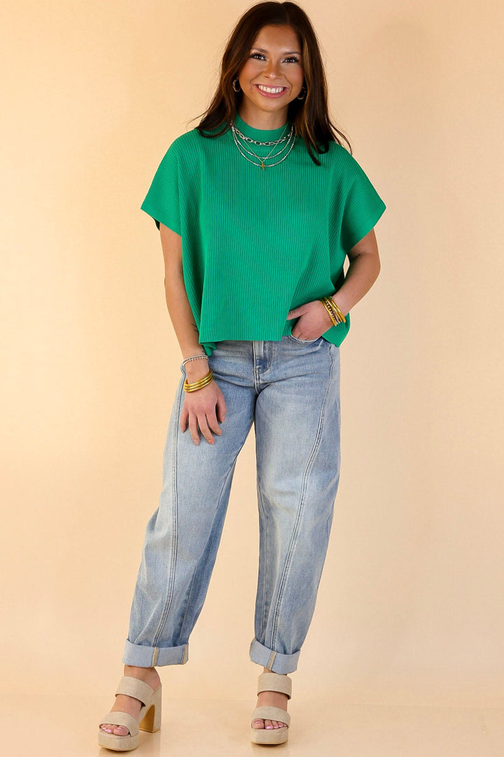 Never Out of Style Short Sleeve Mock Neck Top in Kelly Green