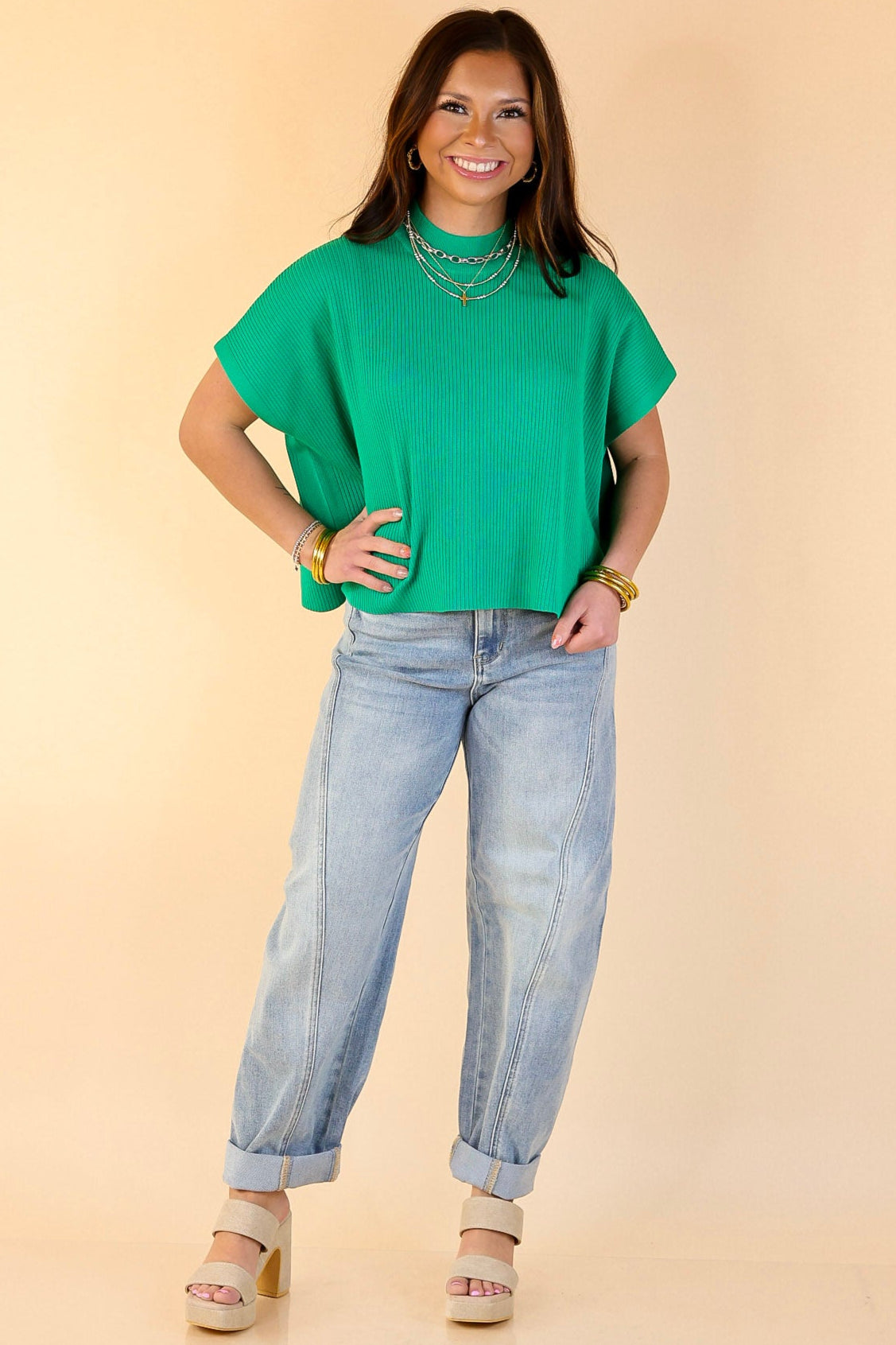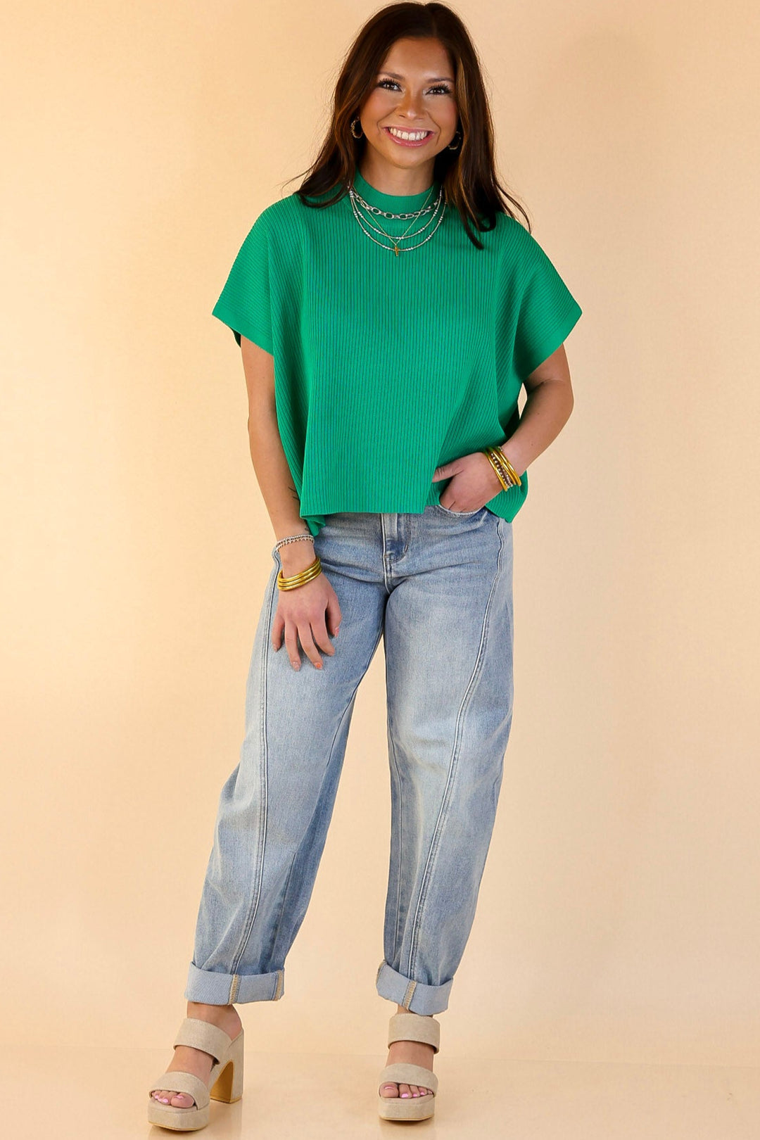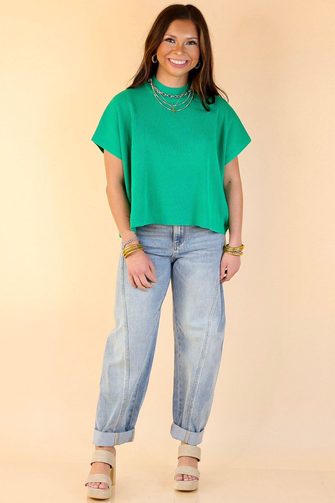 The Never Out of Style top is a timeless wardrobe essential, perfect for any season. Featuring a chic mock neck and a comfortable boxy fit, this short sleeve top offers the perfect balance of style and ease. Whether you're layering it for cooler weather or wearing it solo for warmer days, its versatile design ensures you stay effortlessly stylish year-round.