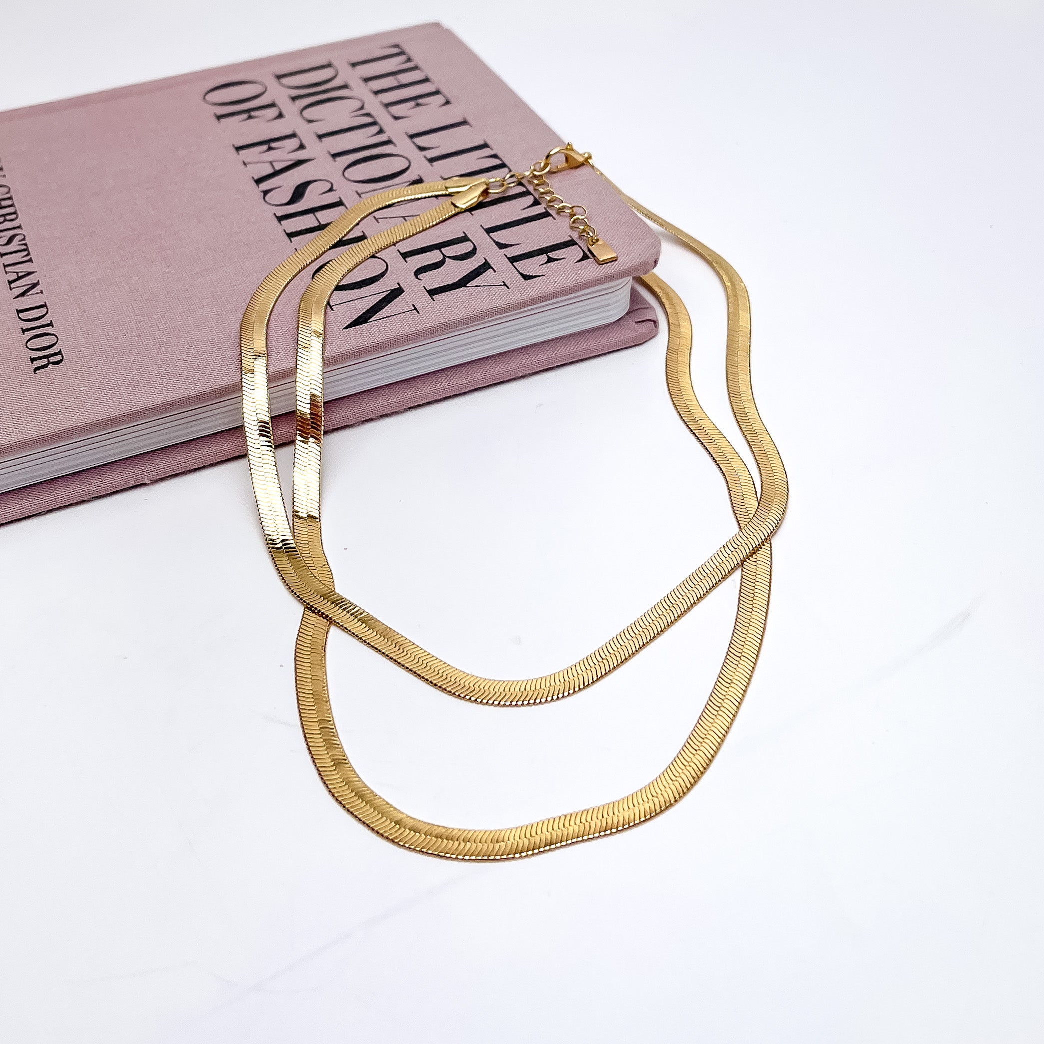 This Night Life double layered gold-tone chain necklace is perfect for any outfit. It features bold gold tones for a striking look. This necklace is a classic you'll need in your collection!