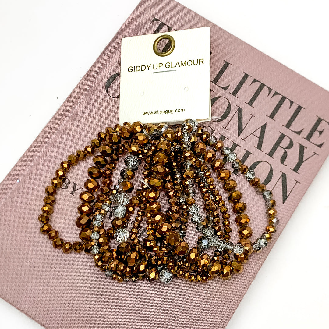 Nine Piece Crystal Beaded Bracelet Set in Brown