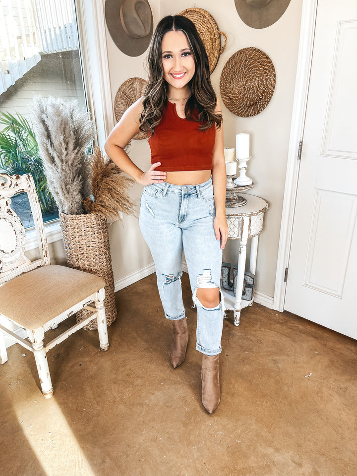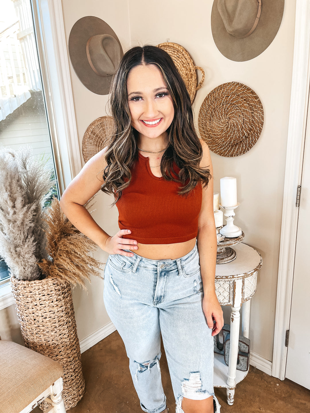 Dream Babe Notched Neckline Crop Tank Top in Rust Red