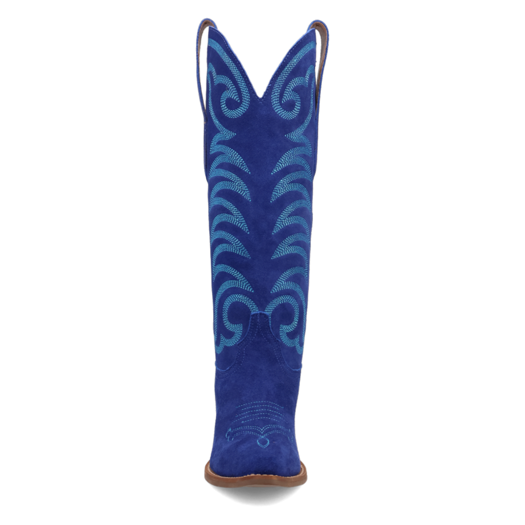 Introducing the newest Dingo "Movin' On" Leather Boots in Blue! These tall boots feature eye-catching western-inspired embroidery on the shaft and toe, adding a touch of country charm to any outfit. Stand out in style with these must-have boots - available now for pre-order!