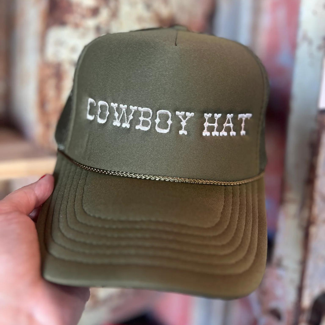Introducing our "Cowboy" trucker cap in the trendy olive green color. This versatile cap features bold white embroidery, making it the perfect accessory for any outfit. Show off your style and make a statement with this must-have cap!